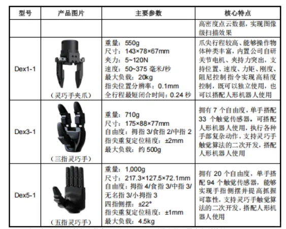 7.主要产品人形机器人、四组机器人、机械臂和灵巧手等