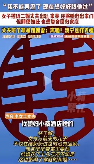 “现代版的多尔衮!”河南开封,女子二婚还带着一个儿子,结婚16年来,男子给继子娶媳妇、买房,还花了十来万张罗着办婚礼,结果,这样的付出没能换来妻子和继子的真心,反而成了免费的提款机。更气人的是,女子找来记者控诉,说男子长相一般,挣不到钱,还出轨、家暴,但她还是想复合,想好好一起过日子。男子:我宁愿光棍也绝不和她一起过! 这名男子是河南开封本地的普通务工人员,和女子再婚时已年过四十,自身没有亲生子女,见到女子独自抚养幼子的处境,便动了真心想要组建完整的家庭。婚后他始终坚守着为人夫、为人父的责任,主动放弃生育亲生孩子的想法,把全部精力都放在继子身上。 十六年里,男子常年在开封本地的工厂、工地打零工,装卸货物、清理厂区,干的都是耗体力的粗活,每天工作时长超过十个小时,挣来的工资从不私自留存,全部交由妻子支配。继子从小学到成年的所有开销,包括学费、课外支出、衣物生活用品,全由男子一人承担,他自己常年穿旧衣,三餐简单对付,却从不让继子在生活上受半点委屈。 继子到了谈婚论嫁的年纪,男子主动扛起成家的全部责任。结合开封当地的婚嫁实际情况,他拿出多年攒下的务工积蓄,为继子在县城购置了婚房,支付了房屋首付。婚礼的各项流程他全程操持,婚庆布置、酒席预订、彩礼支付等所有花费,累计达到十二万元,这笔钱没有让妻子和继子承担分毫。 他满心以为掏心掏肺的付出,能换来家庭的和睦与亲情,可继子的婚礼刚结束,妻子和继子就露出了算计的面目。男子随着年龄增长,体力大幅下降,无法再胜任高强度的体力工作,只能更换收入较低的轻活,家庭经济来源随之减少,妻子便开始无休止地抱怨,整日指责他挣钱能力不足。 继子成家后彻底与男子划清界限,日常从不主动沟通,逢年过节也没有任何问候,母子二人将男子视作单纯的经济支撑,家里的水电、伙食、日常杂项开支,全都要求男子独自承担,只要男子稍有犹豫,就会遭到两人的联合指责。 女子为了继续榨取男子的价值,主动联系媒体记者,在镜头前刻意歪曲事实,编造男子出轨、家暴的虚假信息,还拿男子的外貌、收入进行无端贬低,试图通过舆论施压让男子妥协。她嘴上说着想要复合、好好生活,真实目的却是让男子继续承担家庭全部开支,满足自己和继子的生活需求。 男子面对不实指控没有妥协,他拿出务工考勤记录、银行转账凭证、工友证言等实打实的证据,逐一拆穿女子的谎言。他坦言十六年的婚姻里,自己倾尽所有付出,从未有过半点亏欠,换来的却是持续的算计与利用,内心的失望已经无法弥补。他明确表示,即便终身独居,也绝不会再回到这段充满功利的关系中。 重组家庭的维系核心从来不是单方面的牺牲,真心相待需要双向的回应与珍惜,一味的索取只会消耗掉所有的温情。男子用十六年的坚守诠释了善良,却遭遇了最现实的凉薄,这样的经历也让更多人看清了功利婚姻的冰冷本质。 各位读者你们怎么看?欢迎在评论区讨论。