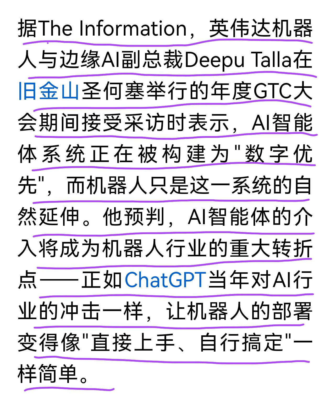 美银预测未来五年人形机器人出货量年增86%;英伟达机器人负责人表示AI智能体将引爆机器人领域的“ChatGPT”时刻;宇树科技IPO申请获得上交所受理。面对这一连串的利多,人形机器人板块会如何反映? 人形机器人应用前景在全球达成一致预期,美银预测2060年人形机器人保有量30亿台,远超目前全球汽车保有量。但何时能爆发还有待明确,取决于其技术的突破,人形机器人的进化很快,四肢已经很发达了,但就是缺乏通用机器人大脑,目前算力主要集中在模型训练环节,英伟达机器人负责人Deepu Talla 认为,AI智能体的介入,让人形机器人部署变得“直接上手,自行搞定”一样简单,就像当年ChatGPT冲击AI行业一样。他认为机器人行业需要实现这两点突破,既要有推理和解决问题的大脑,也要机器人的部署足够简单。 不管人形机器人AI智能体何时出现,爆炸性增长何时到来,但人形机器人已经迈出了加快发展的步伐,美银预测2026人形机器人出货量9万台,2030年120万台,复合增长率86%,比早期的电动汽车增长速度快很多。人形机器人板块调整一年多了,受春晚刺激也只是一日游,但人形机器人产业才开局,就像当年的电动汽车,比亚迪、宁德时代都处低位,当时布局的现在已赚得盆满钵满了。 起步时你看不上,爆发时你攀不起。人形机器人调整充分,适时布局静待花开。