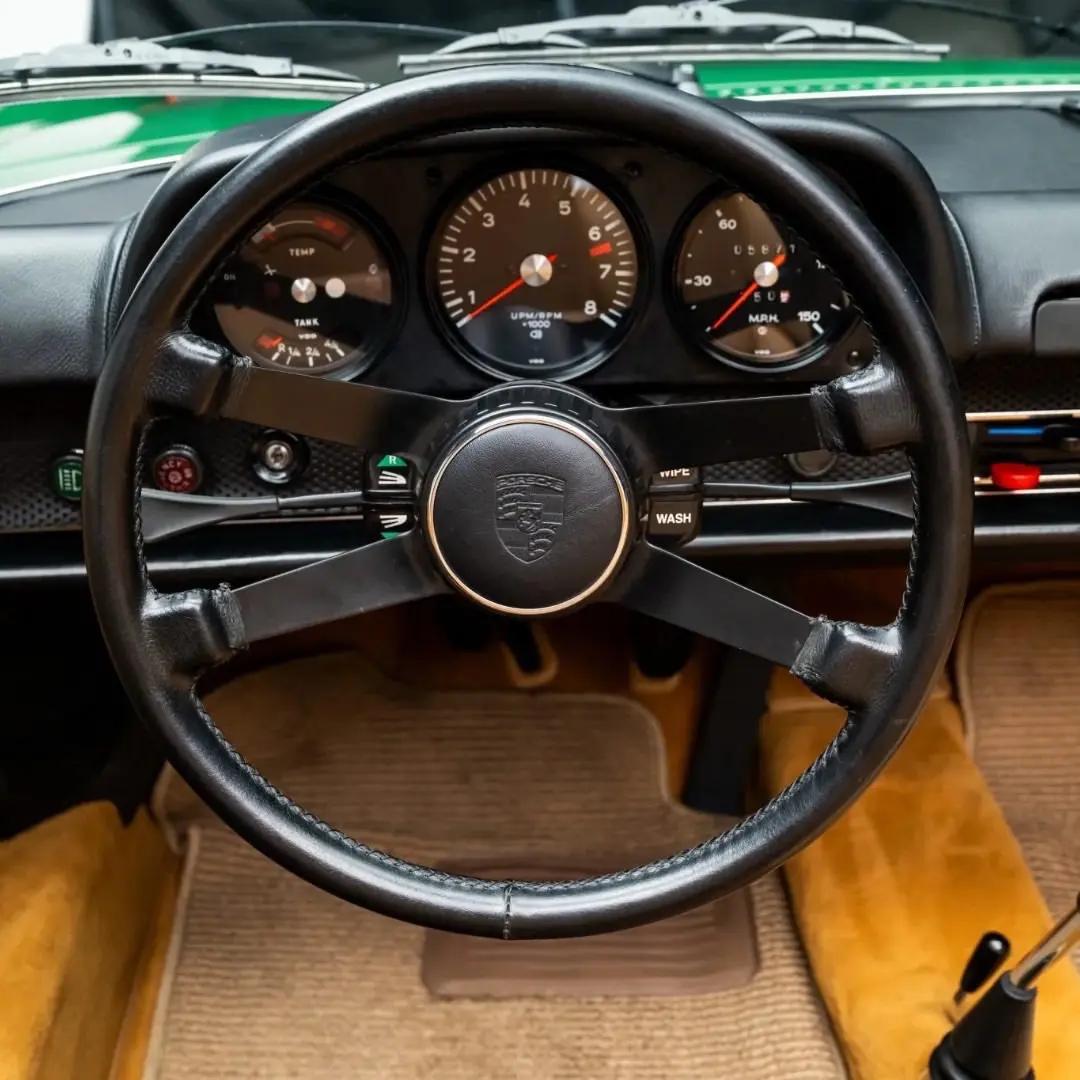 1970年,Porsche推出914-6,这款由品牌与大众合作开发的中置引擎跑车,在当时被视为迈向入门级性能市场的重要尝试。相比四缸版本,914-6搭载源自911的2.0升水平对置六缸发动机,最大功率约110马力(约81千瓦),车重不足1吨,使其在那个讲求驾驶纯粹性的年代,成为一台强调平衡与操控的轻量化代表。这台车在2009至2011年间由加州知名修复机构完成整备,并在2024年升级为一台2.7升水平对置六缸发动机,采用镁合金曲轴箱结构,动力输出与响应相比原厂更为饱满直接。配合五速手动变速箱,其机械质感依旧纯粹而生动。双韦伯化油器与电子点火系统的组合,让这台老车在保留传统味道的同时,也具备更稳定的运转表现。整车采用经典的Irish Green车漆,搭配米色真皮内饰,复古气质与运动氛围相得益彰。14英寸Fuchs锻造轮毂(约35.6厘米)与Carrera规格通风盘式刹车系统,进一步强化了其操控与制动性能。可拆卸Targa车顶,则让驾驶者在开放与封闭之间自由切换。在那个石油危机尚未全面爆发、性能与设计仍被热烈追逐的年代,914-6不仅是一台车,更是一种关于驾驶本质的表达——轻、快、准,以及人与机械之间毫不掩饰的连接感。保时捷914 汽车知识分享 经典情怀老车