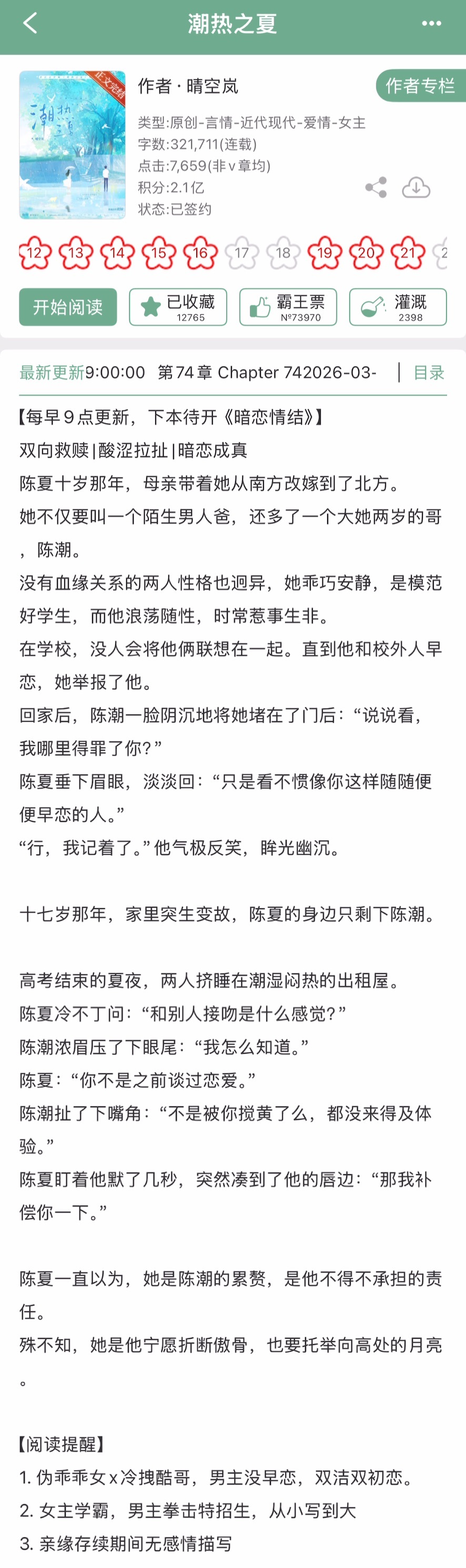 晴空岚的《潮热之夏》完结啦!现言➕伪骨科➕双向救赎,一些酸涩拉扯,伪乖乖女x冷拽酷哥