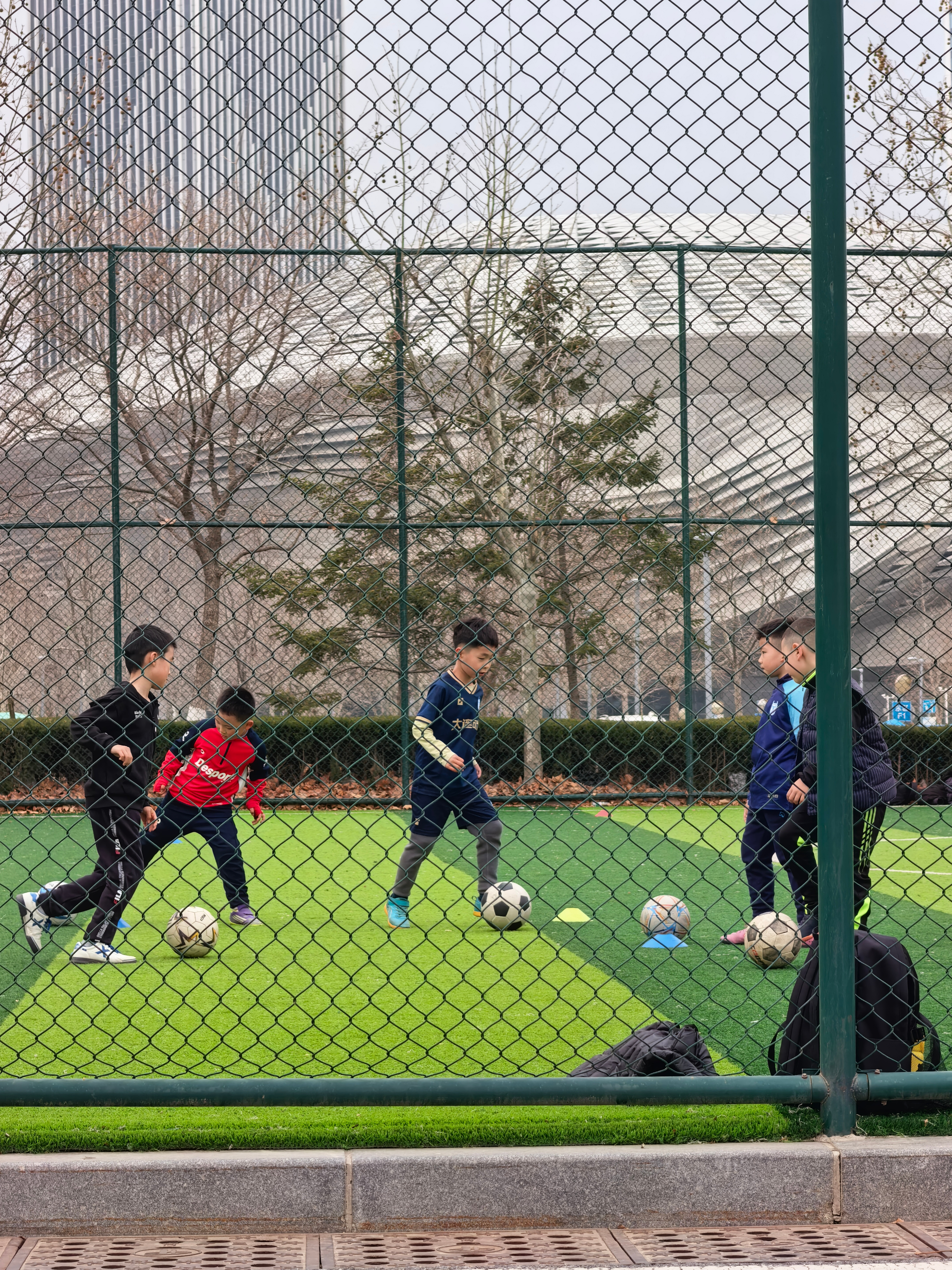 带夏天来踢球我本想的是明天出差今天陪陪他但是看他踢的实在太差了忍不住还是想教训他