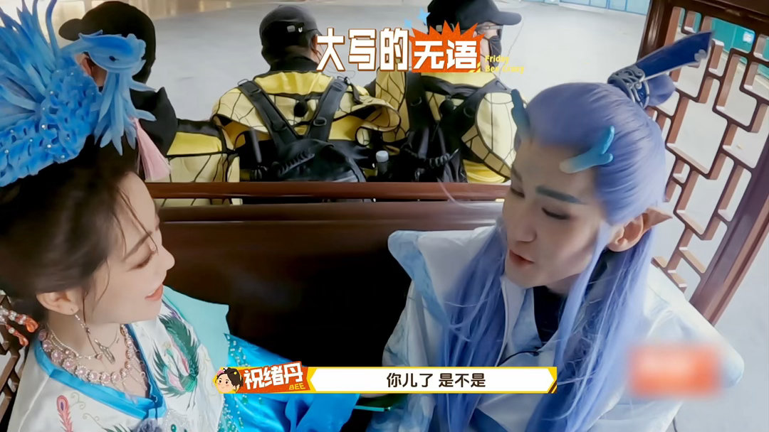 汪铎祝绪丹在这拍恋综呢周五晚高疯 汪铎顶着触角,祝绪丹想摸他就低头,一动不动让她