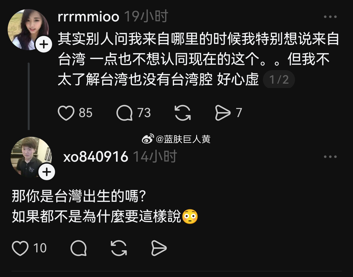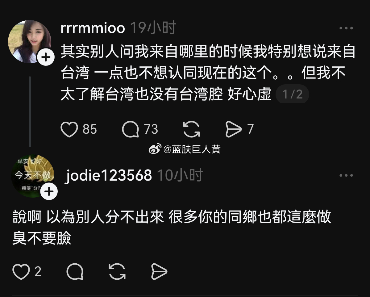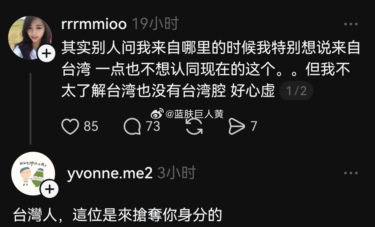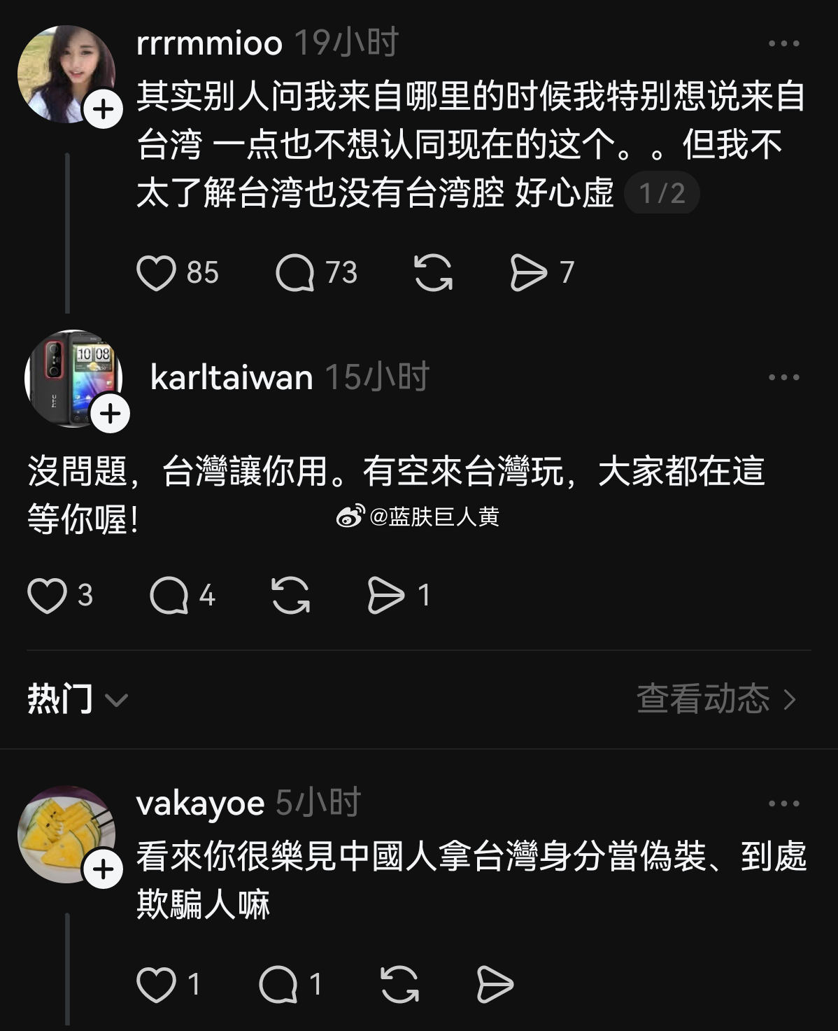 当脆上的殖人哭诉自己“不想当大陆人,想当台湾人”时,台湾人的反应如下——