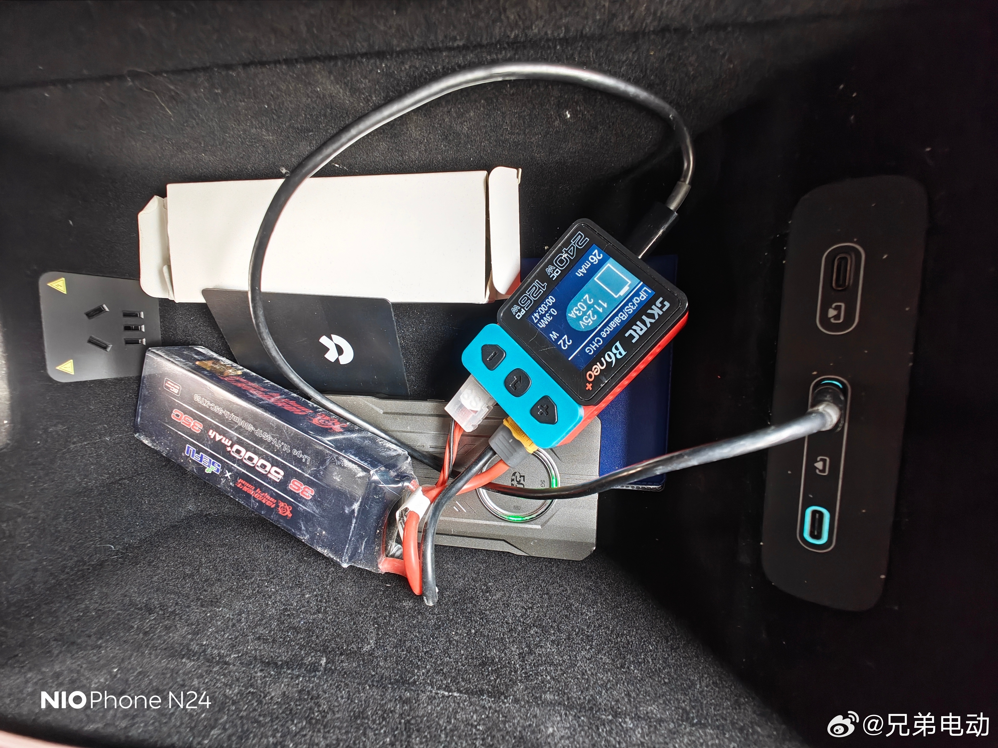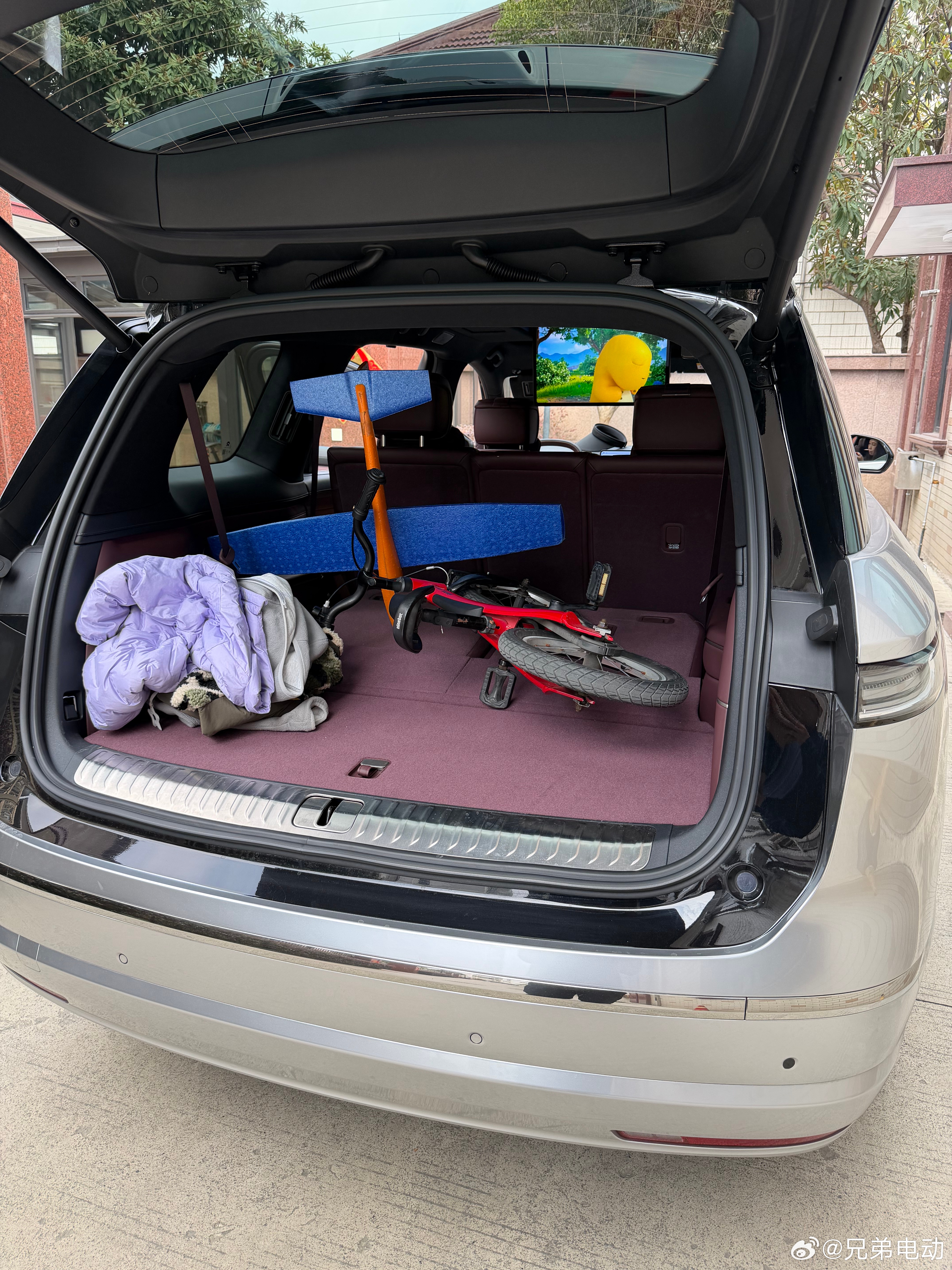 开着大7座ES8带娃出去玩玩,各种玩具带了好几个,有泥土的RC车放前舱,分舱合理。