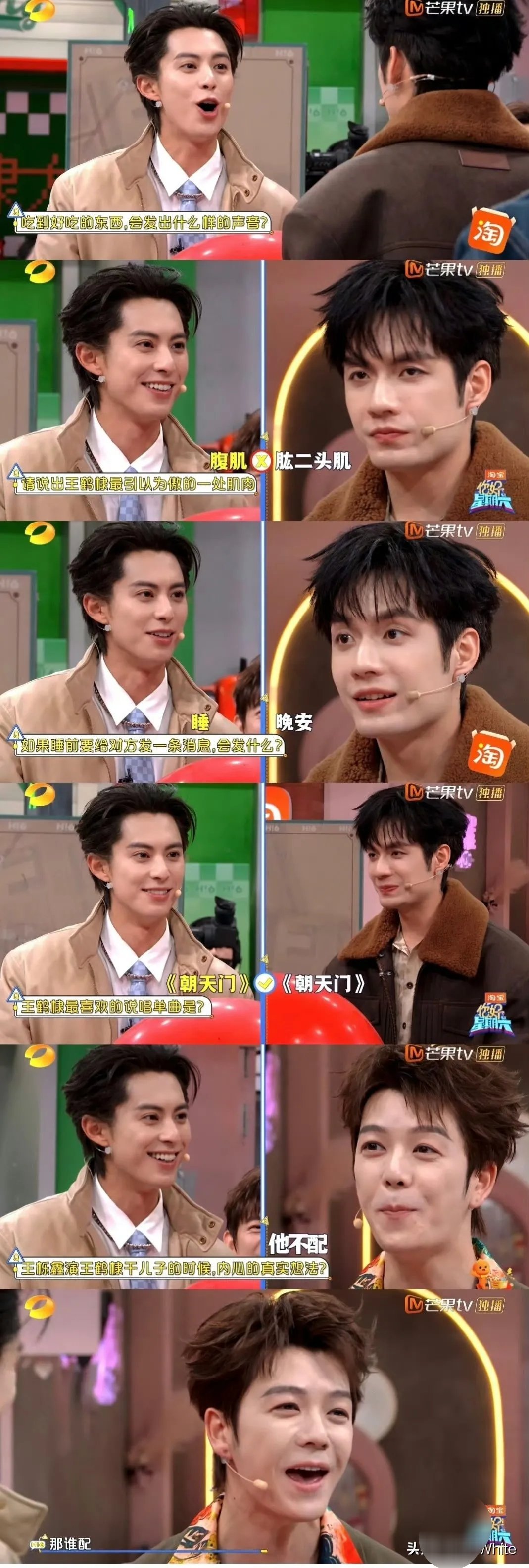 王鹤棣回《你好星期六》剧宣《黑夜告白》,所有问题都围绕他展开!网友调侃,老芒对财神爷回归就这样!讲真没有王鹤棣,孟子义的你好星期六,总感觉少了好多的热闹,笑点也变得越来越高,很多时候看何炅刻意夸张的调动大家的反应,点破笑点的感觉,为他感到心累!你好星期六真的还是要多一点能带动气氛的年轻人来参加才行,何炅不能一个人又主持又做气氛组,还要负责抖包袱~希望王鹤棣,孟子义,檀健次,丁程鑫,多多同框,多多回家!