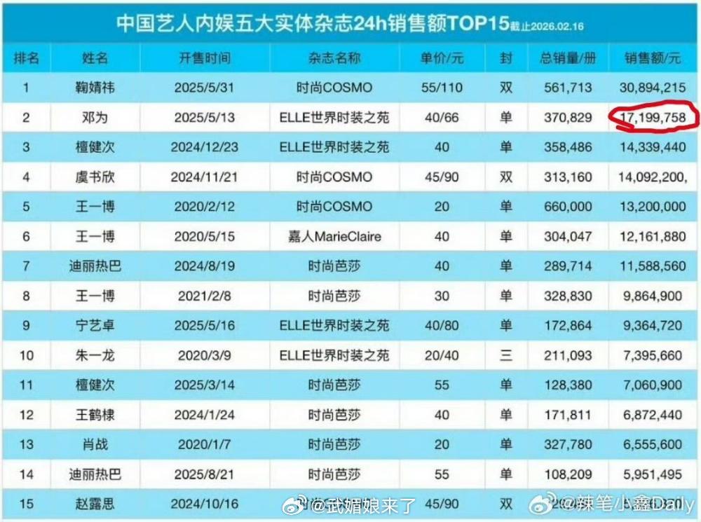 张凌赫《ELLE》战报:开售15分钟销售额破千万,24小时达1665万,跻身内娱