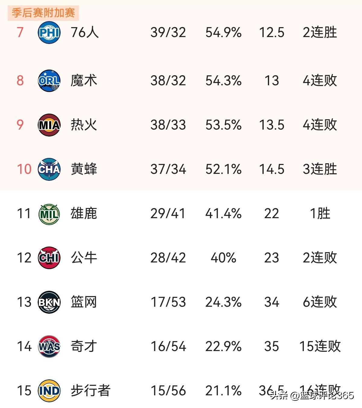东部排名榜卡位争夺战白热化:6支球队仅3个胜场差,老鹰重返季后赛区;骑士上下两难,难逃第4的结局 东部卡位战,已经杀疯了。看今天这排名,从第5的猛龙到第10的黄蜂,六支球队挤在区区3个胜场差里,稍有不慎就是天堂地狱。老鹰凭借126-110大胜勇士,成功挤回前六季后赛直通区,但身后76人、魔术、热火哪个不是虎视眈眈?尤其是76人,今日126-116战胜爵士,两连胜状态正热,和老鹰战绩难分高低,老鹰这个位置坐得并不稳。 最尴尬的其实是骑士。今日111-106逆转鹈鹕,战绩44胜27负,看似稳坐第四,实则上下两难。追第三的尼克斯差2个胜场场,与身后猛龙有4个胜场差。上不去,下不来,或将注定就是最后的东部第4名。 再看附加赛区边缘,简直是一锅粥。魔术104-105惜败湖人,遭遇四连败;热火同样命运多舛,122-123惜败火箭,也是四连败,两支球队像是商量好了一起往下掉。而黄蜂今日124-101战胜灰熊,三连胜已经追到只差热火1个胜场场,随时可能把身前的球队拉下马。东部第7到第10这张附加赛门票,恐怕要争到常规赛最后一天。 雄鹿、公牛已经掉队,奇才、步行者更是奔着状元签去了。真正惨烈的是中间这六队,每一场胜负都可能让排名天翻地覆。常规赛还剩十来场,这才是真正考验硬仗能力和心理素质的时候。谁能直通季后赛,谁要去打附加赛,答案很快揭晓。