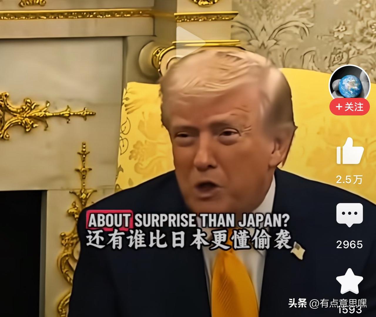 不得不说,一个八十岁的人还能有如此敏捷的反应能力,这点还是令人佩服的。 在高市早苗访美期间,在记者招待会上随团的日本记者向特朗普问到:我们是你们的亲密盟友,你攻打伊朗前为什么不提前告知我们一下呢。 特朗普回答道,我们是偷袭,任何人都没有告诉。还有谁比日本更懂得偷袭?你们偷袭珍珠港前为什么不告诉我呢。 估计高市早苗气坏了,心里话说:你特喵的给我扔俩原子蛋蛋儿,不是也没告诉我嘛,豁牙子吃肥肉,贼也别说贼,咱们一个球样。 ————————————