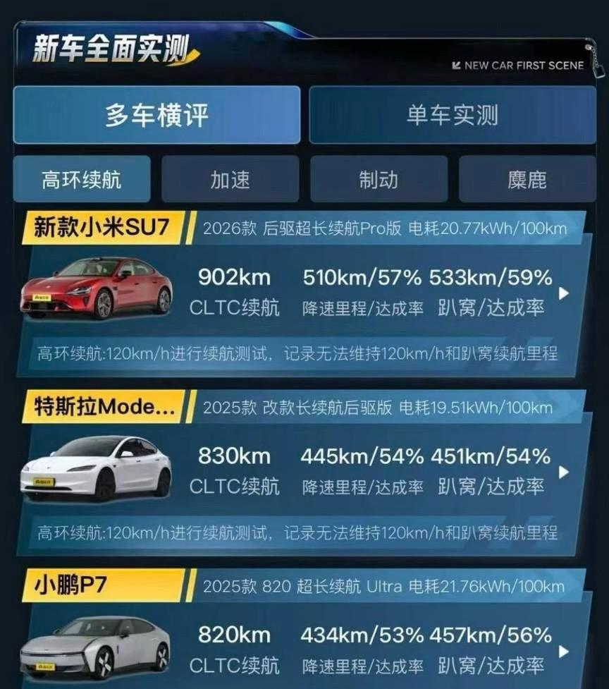新一代小米SU7太牛啦!懂车帝发布的高环续航实测结果出来了,它在120km/h匀