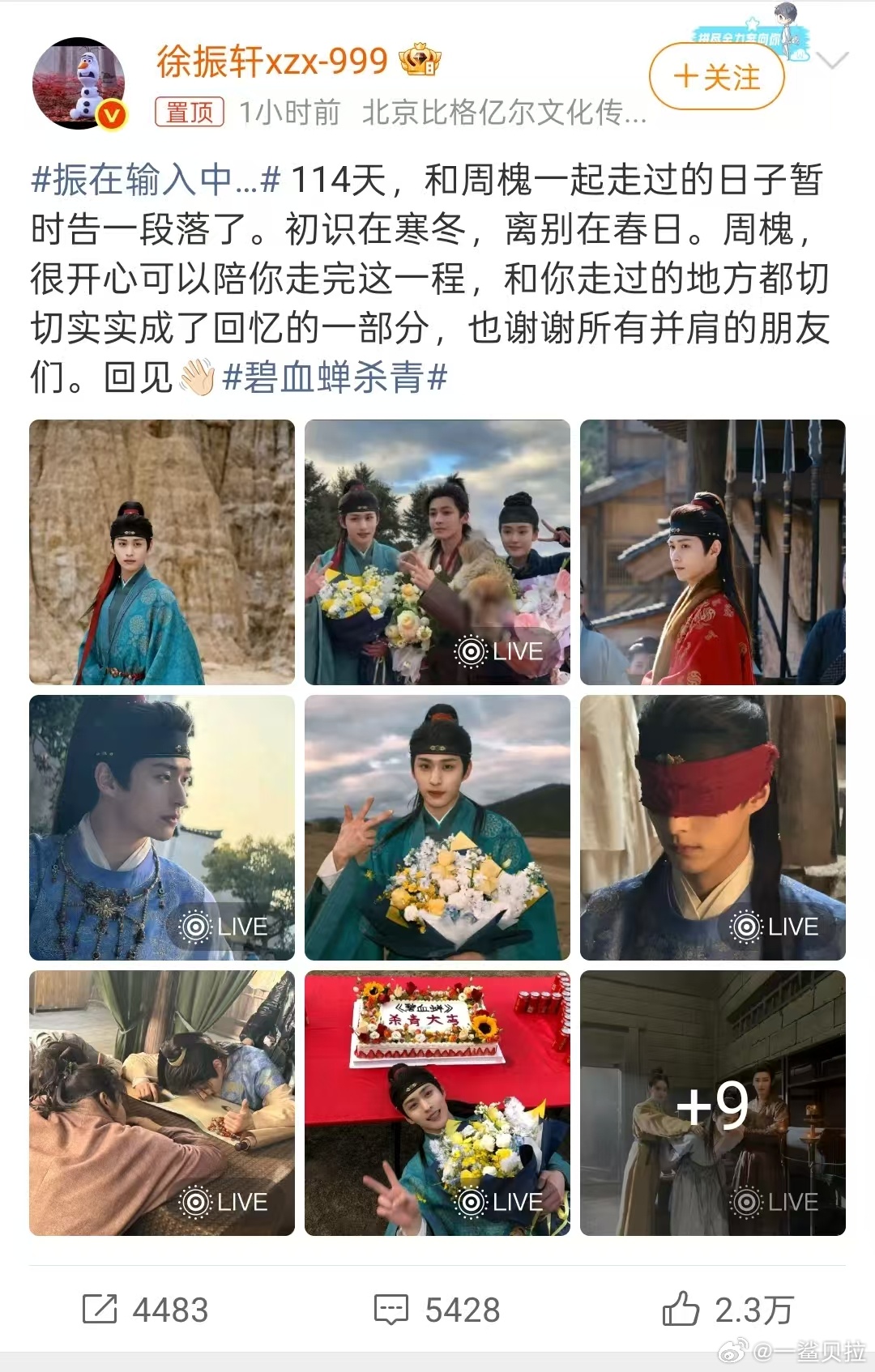徐振轩十八宫格晒碧血蝉杀青照徐振轩碧血蝉杀青晒照 镜头里的每一幕都是时光的馈赠,