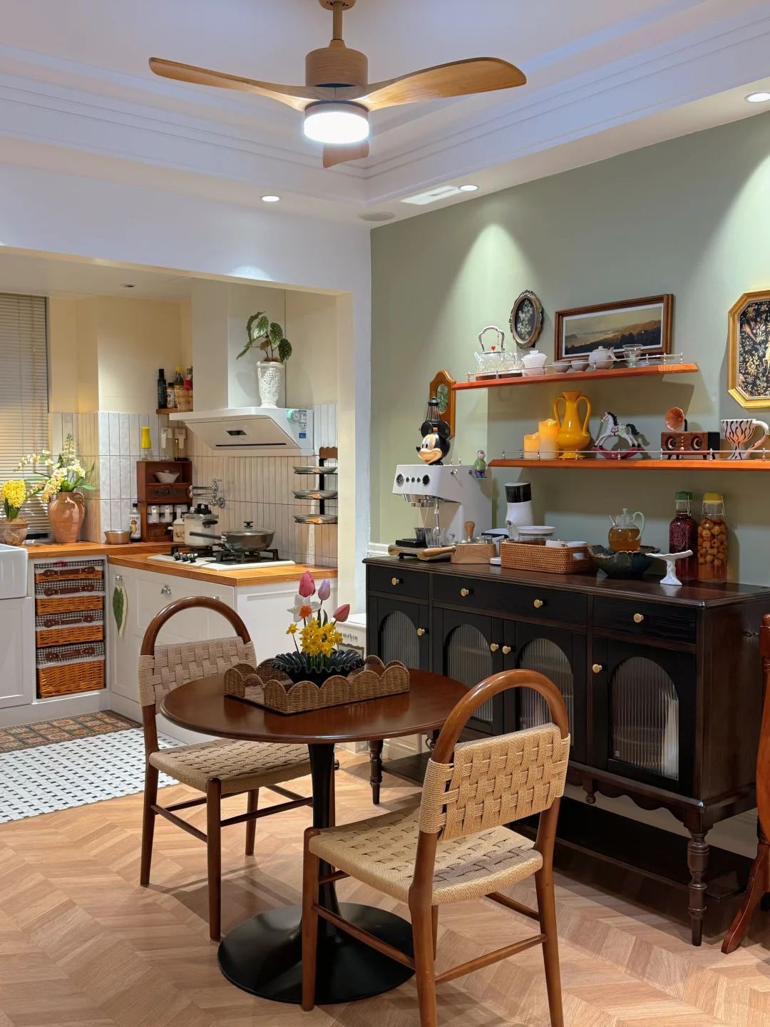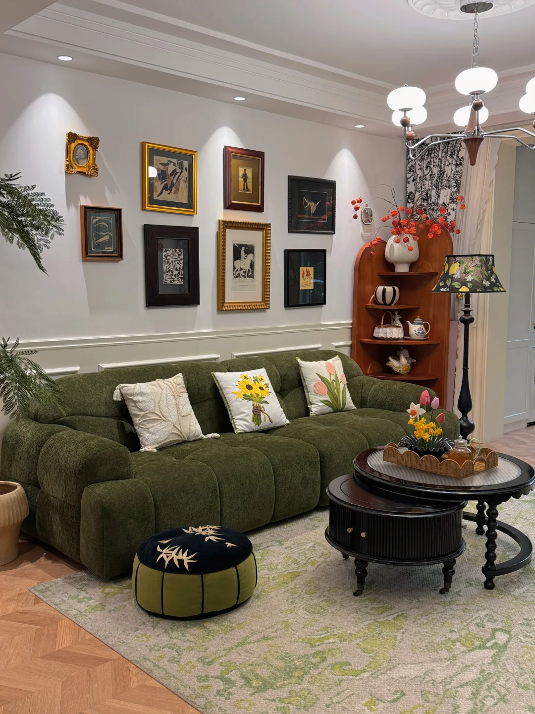 老房子改造能不拆的都保留了! 硬装上基本没做太多投入 全靠软装搭配起来的绿色系复古小家🏠 不仅提高了生活的居住幸福感 也让生活有了更多美学色彩 现在已经入住第五年,真的觉得软装太重要‼️
