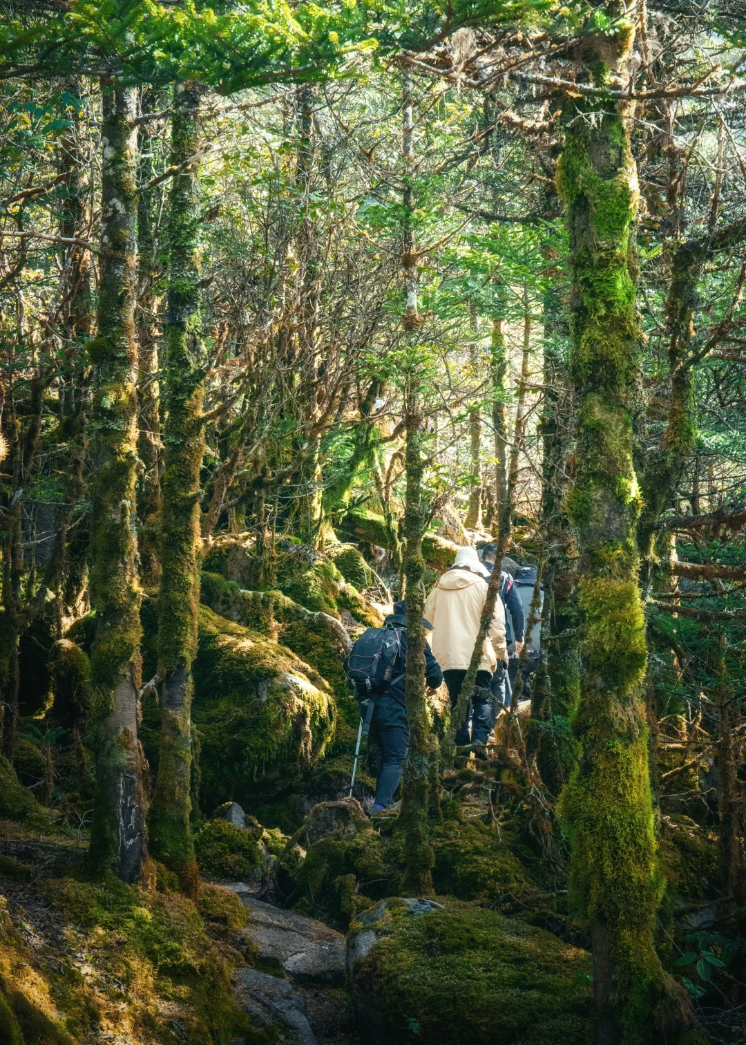 不是国外,更不是Ai! 这里是全网百分之99的人都没走过的超绝小众徒步路线!在接下来的夏天,这里即将封神! 在来这里徒步前,我真的很少用震撼来形容一片森林! 森林,湖泊,雪山,云海…应有尽有! 尤其是森林里随处可见厚厚的青苔,好像森林铺上的绿色地毯,毛茸茸的。 在布满青苔的森林巨树间穿行,我仿佛误入了爱丽丝梦游仙境。 📍地点:四川.冕宁.小相岭(俄尔ze俄) 🚄交通:乘坐高铁到冕宁站,出站后打车到灵山寺。 🌳🌲🌲🌳一些徒步tips: 1️⃣每年5-6月左右,是高山杜鹃花的花期,到时候青苔加上杜鹃花真的美到梦幻。 2️⃣这条徒步路线海拔一路爬升,需要量力而行,不建议没有徒步经验的小白独自前往。但如果你只想看到我图中这样被青苔覆盖的魔幻森林的话,其实就在徒步起点灵山寺背后就有。整条路线前中段都是,我的图片基本都拍摄于此。 3️⃣出行前看清楚天气预报,一定穿舒适防滑的徒步鞋,有些地方还是比较滑的。需要找一名熟悉当地的向导或徒步老手带领,并在某步路上提前下载好路线。
