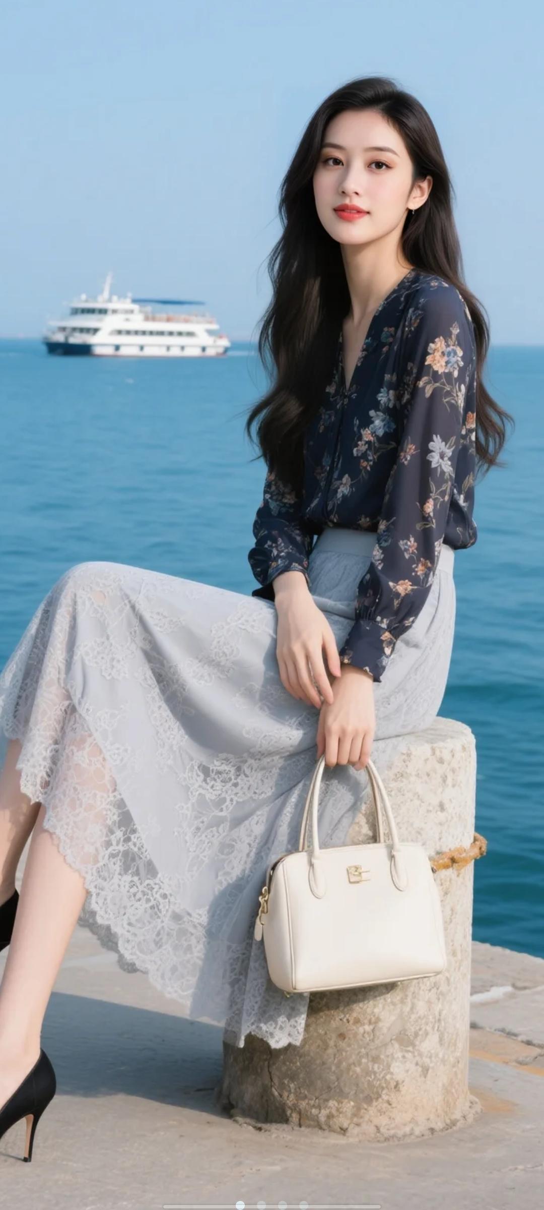 海边度假穿搭指南,优雅蕾丝裙搭配精致手袋,尽显夏日风情!