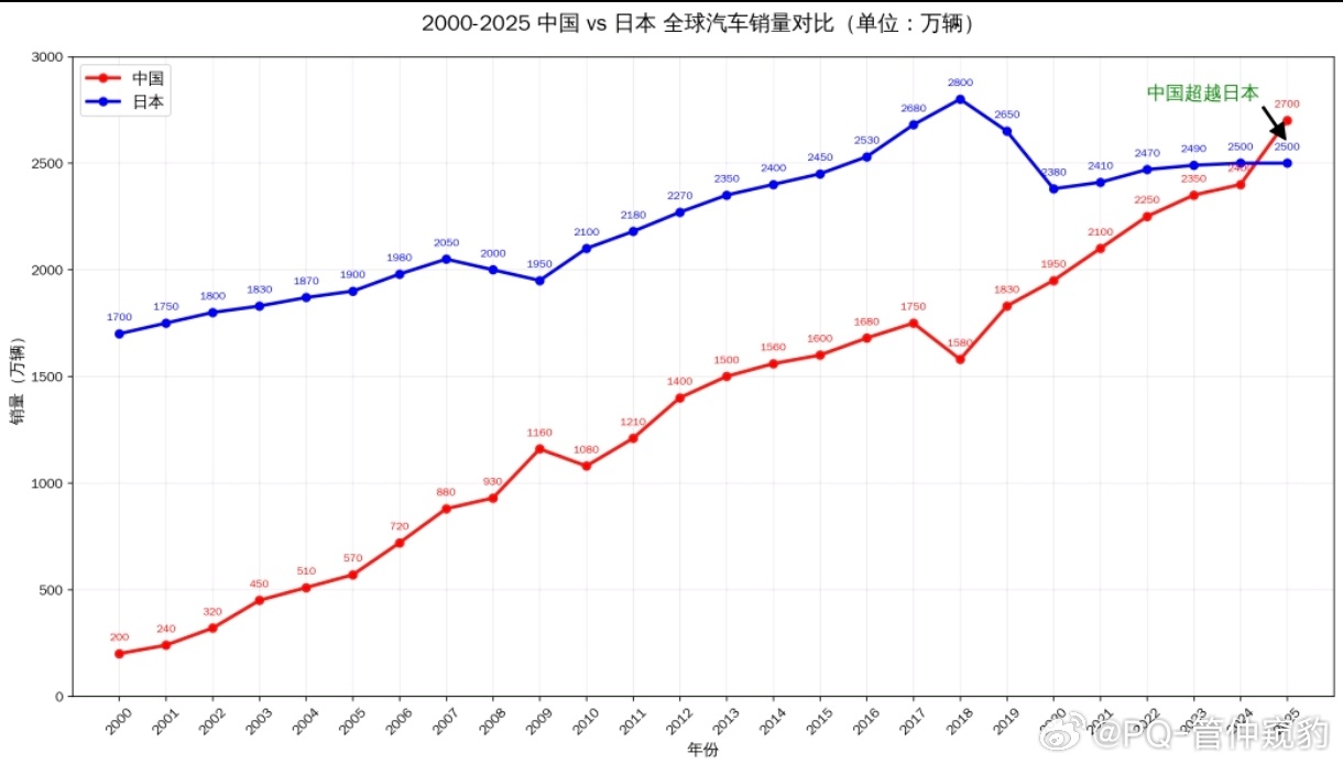 中国汽车销量终结日本25年连霸这里必须感谢党和国家的英明决策!【大力发展新能源】,让我们实现了弯道超车