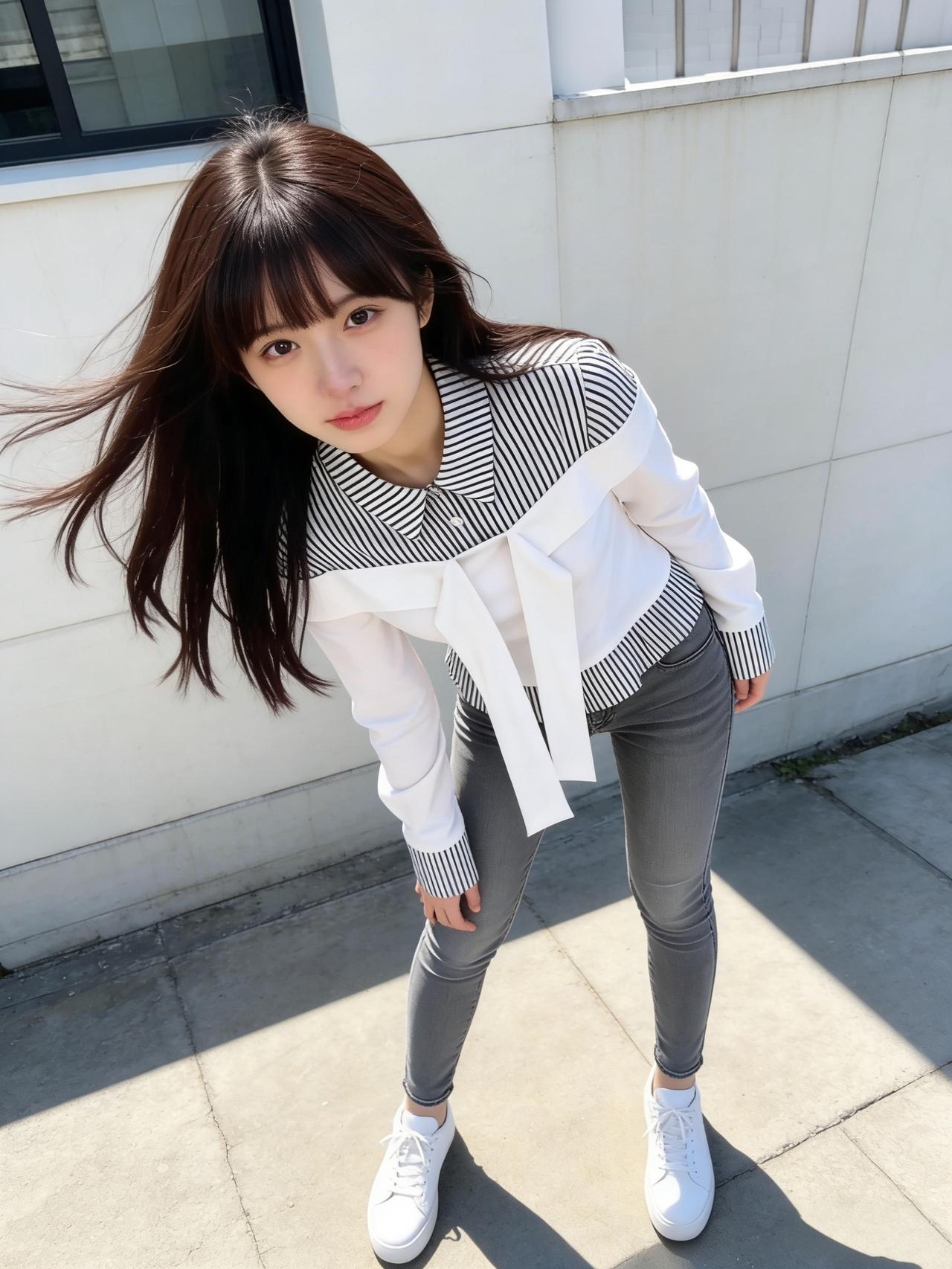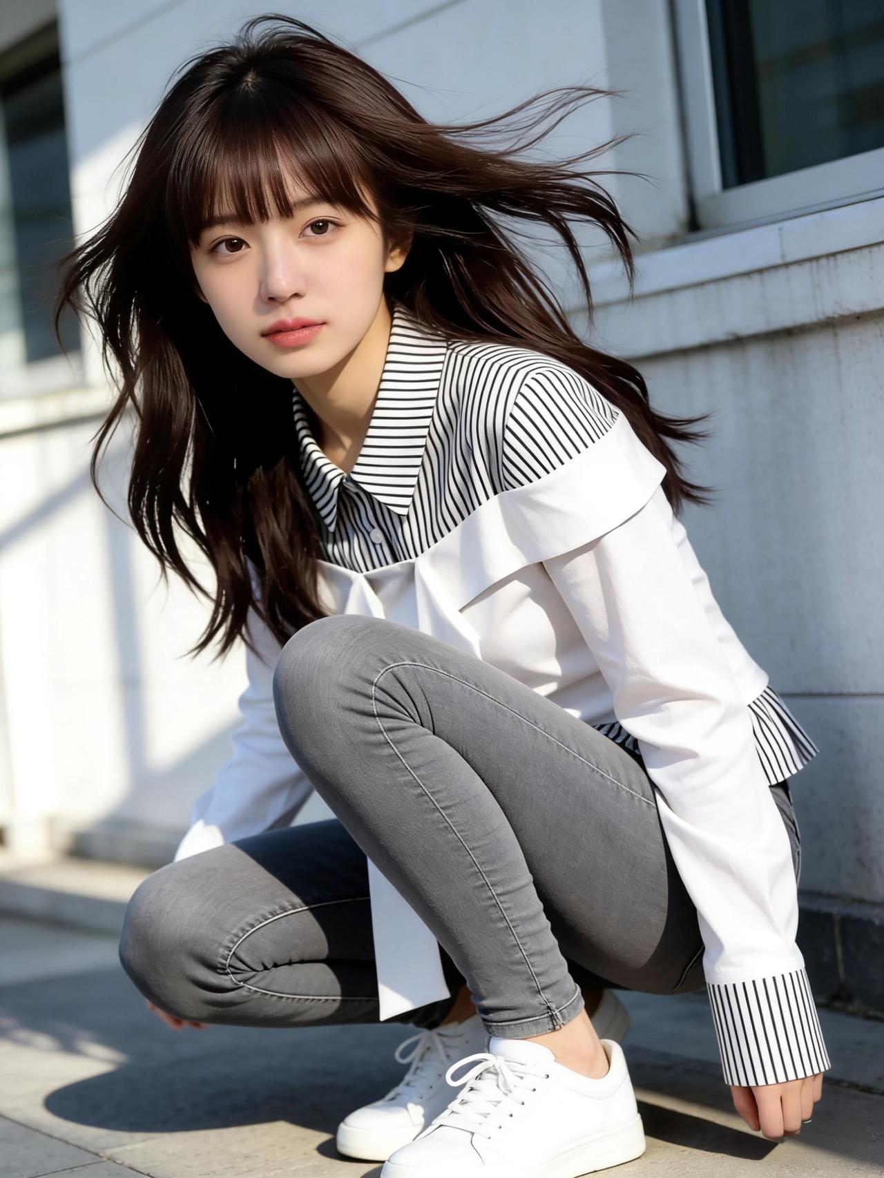 黑白条纹衬衫与牛仔裤,是青春活力的完美代名词。条纹自带清爽少年感,搭配直筒牛仔裤