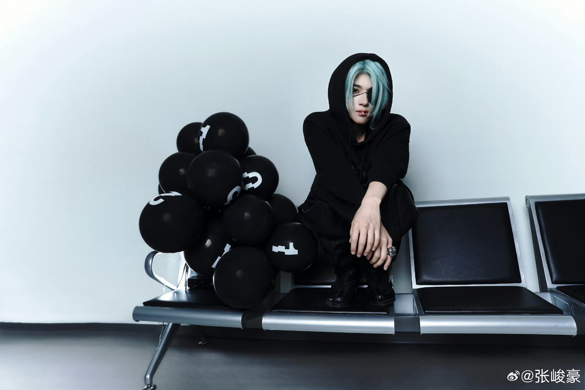 张峻豪薄荷绿发色张峻豪新发色也太眼前一亮了!薄荷绿碎发撞色全黑穿搭,眼罩与唇钉的细节暗藏锋芒,黑气球衬得眉眼更锋利完全撕漫男啊俊豪