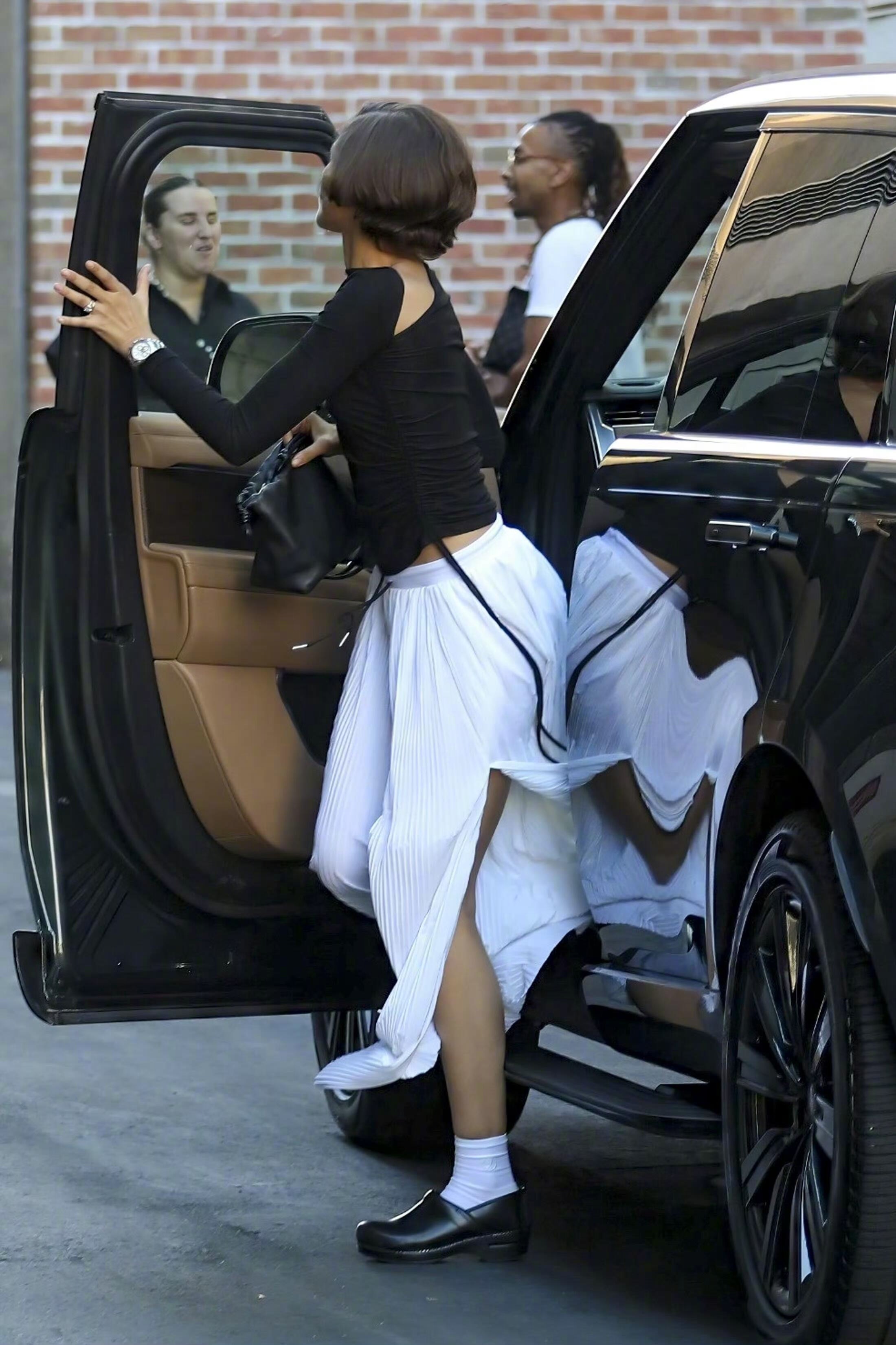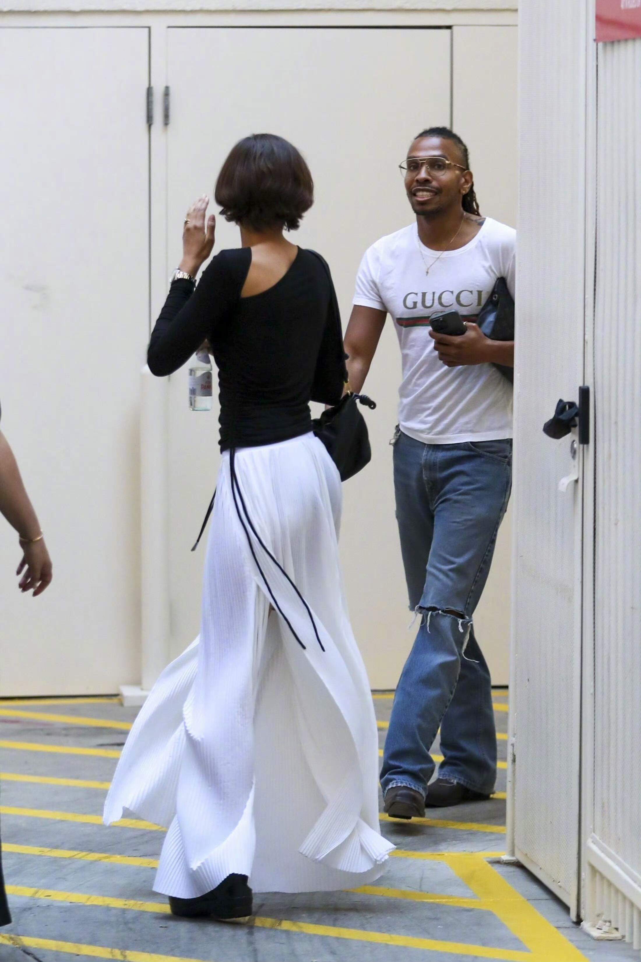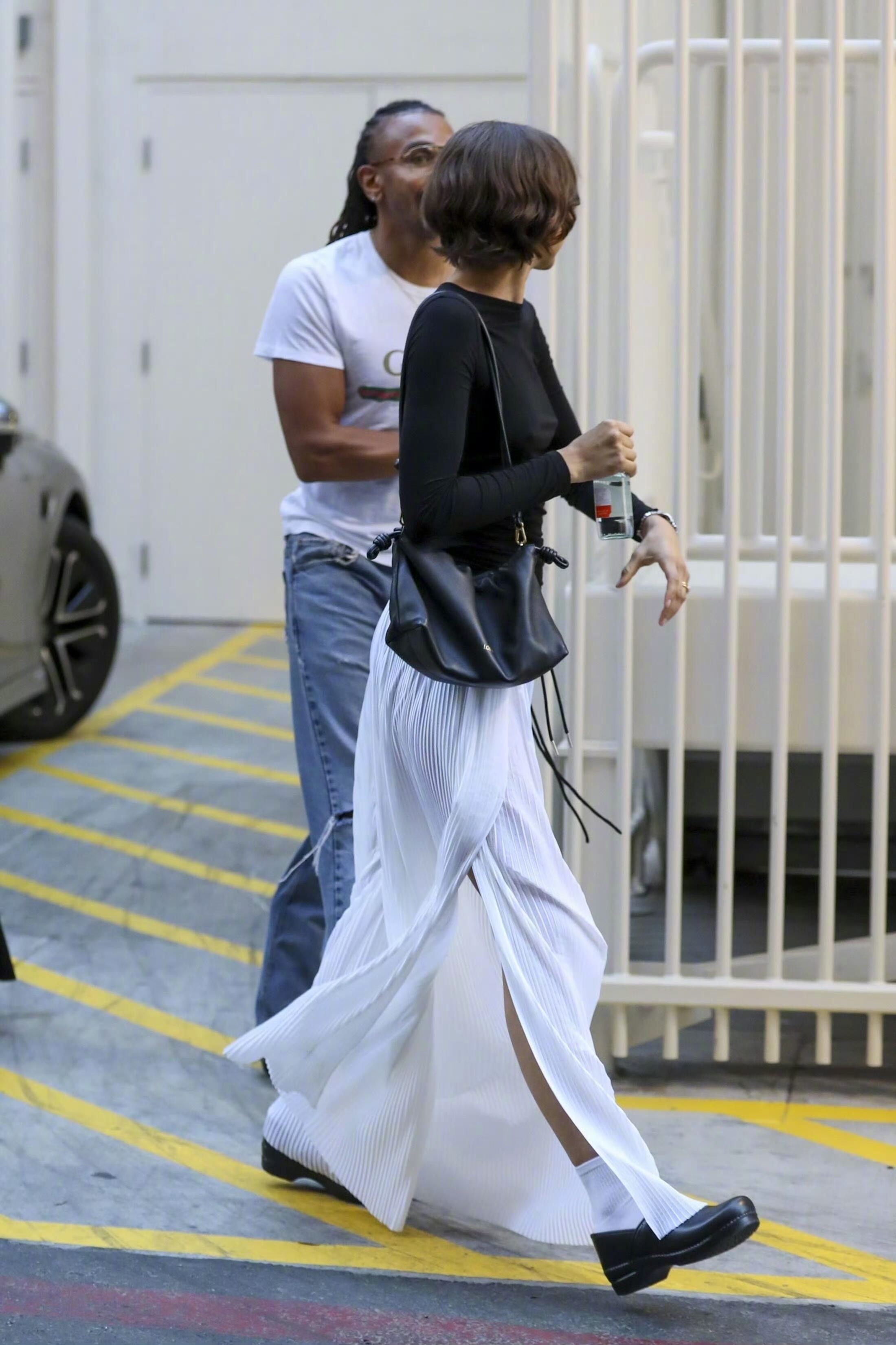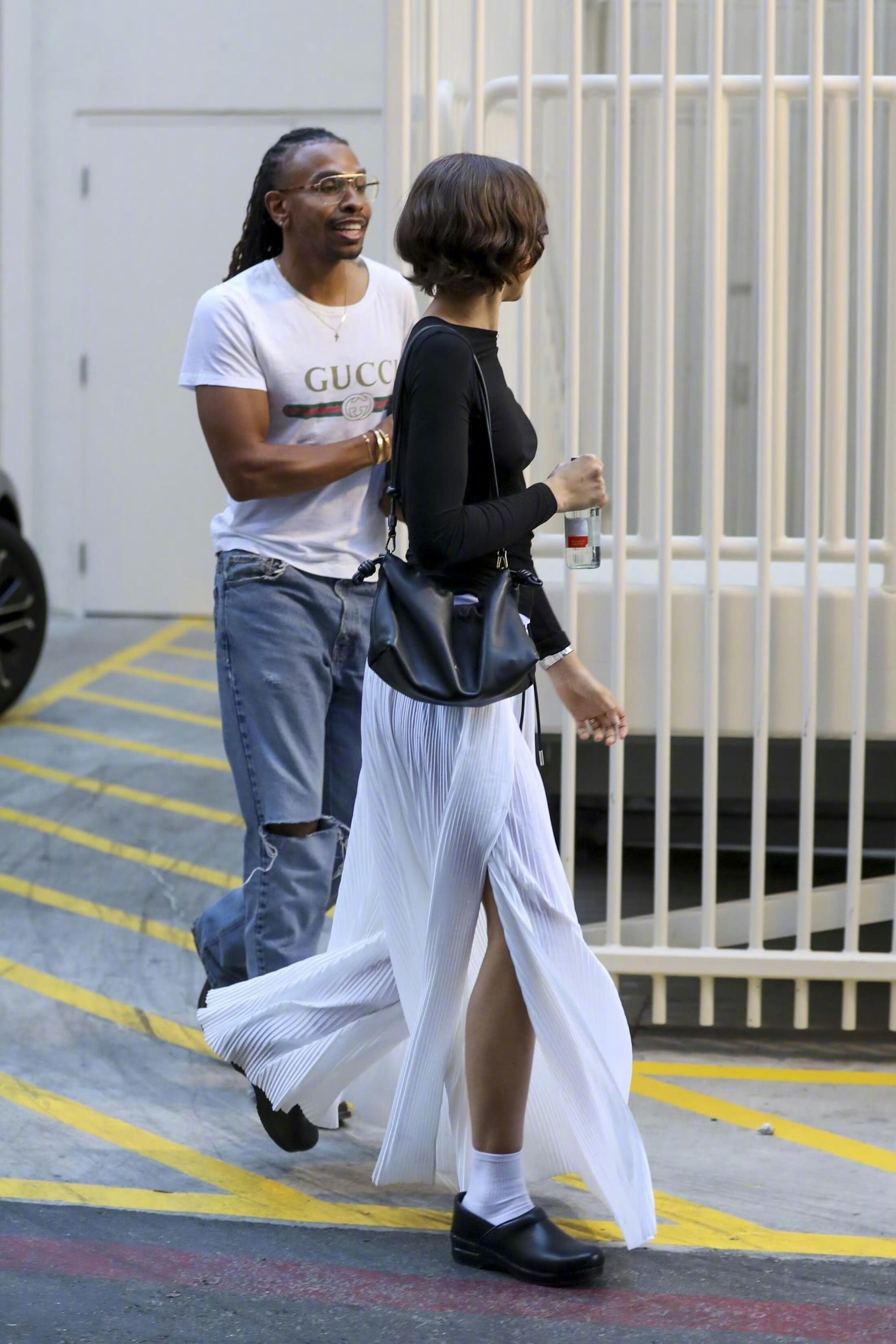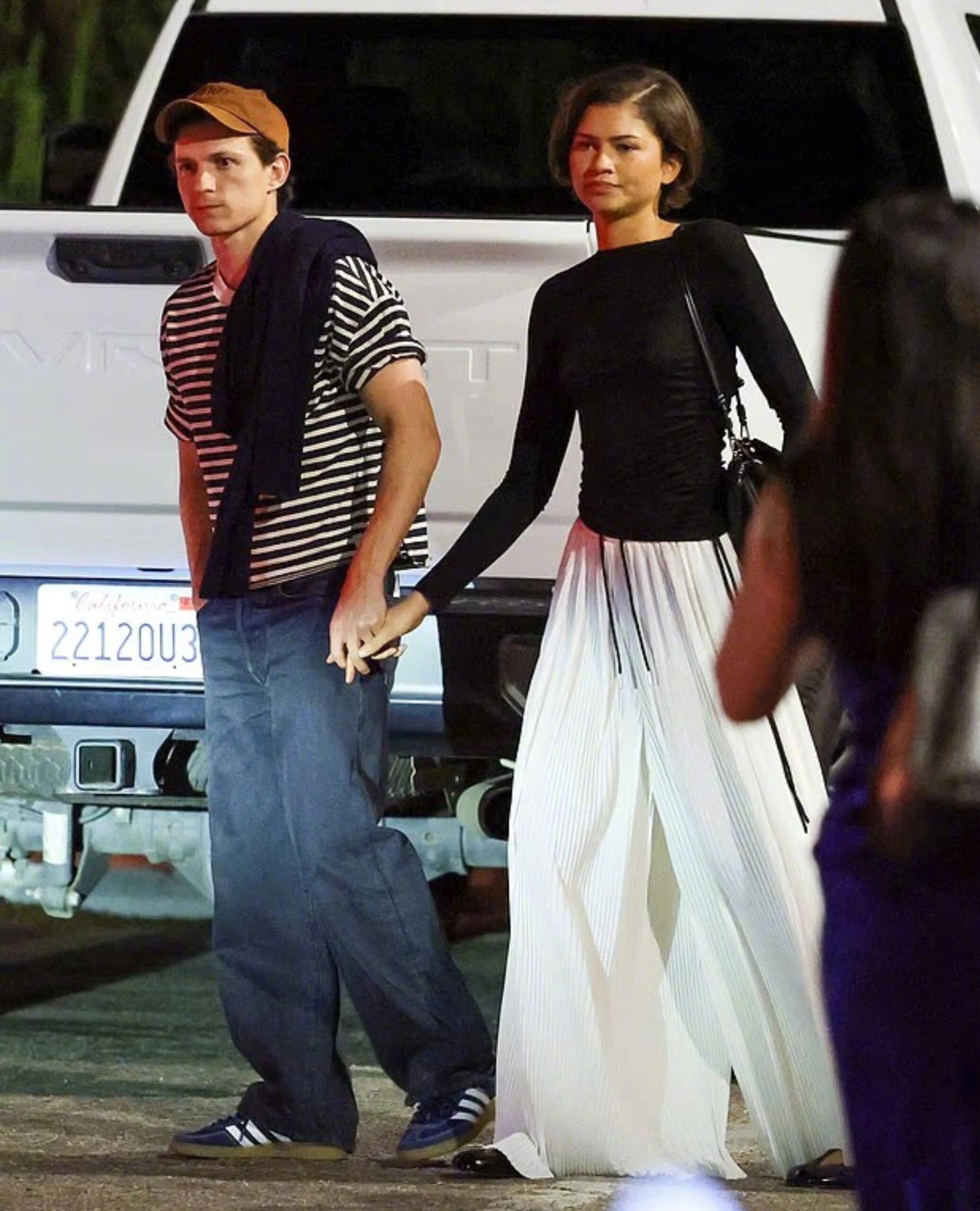 新婚的赞达亚和荷兰弟婚周五晚现身洛杉矶外出吃饭的街拍。 赞达亚一身黑白配,脚穿D