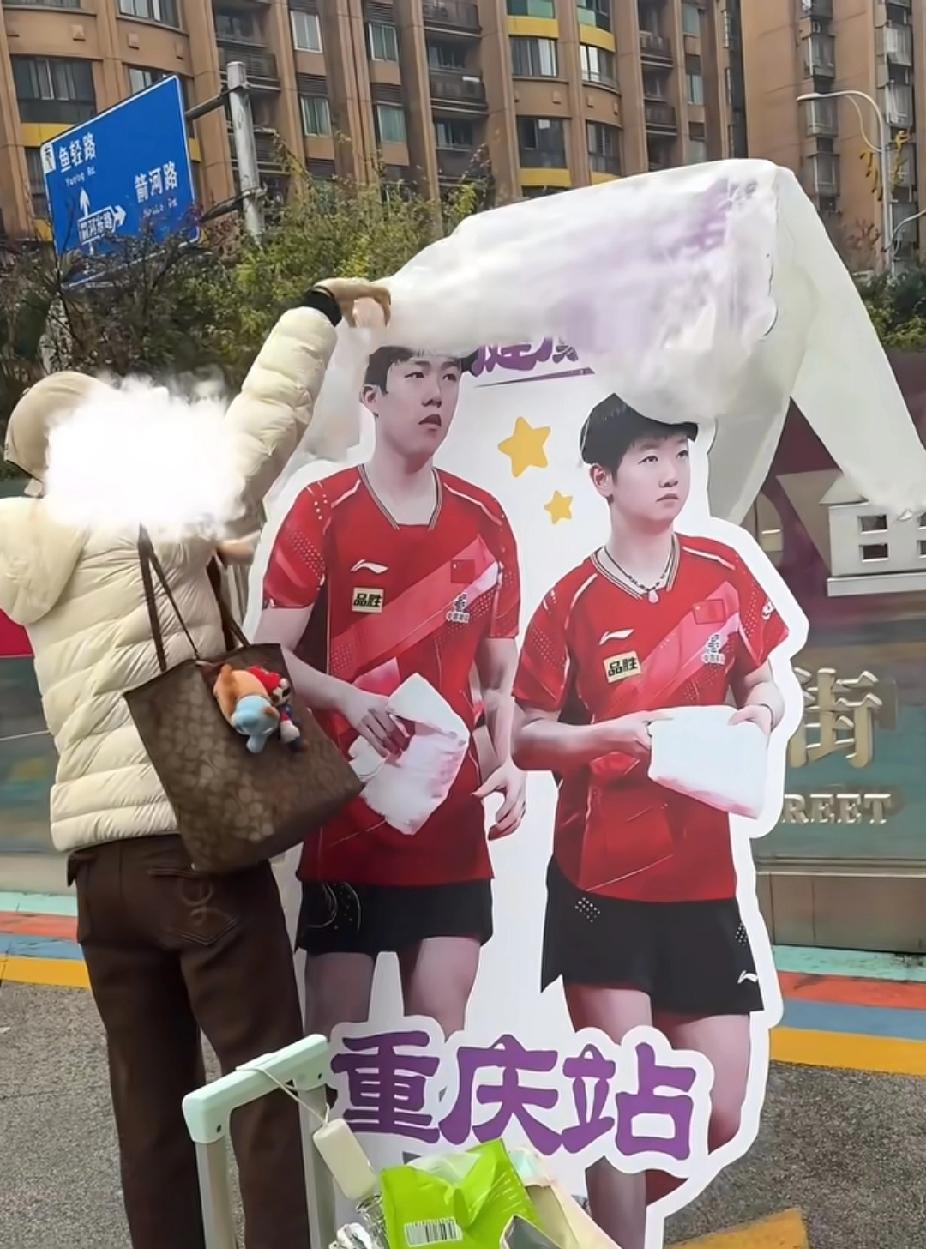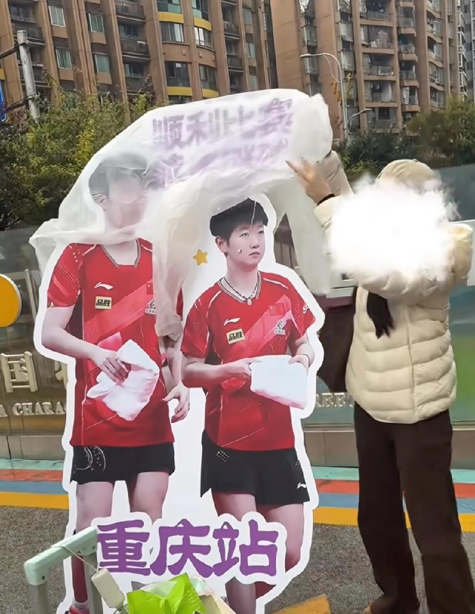 重庆街头这一幕,直接看哭了!😭 家人们,我真的被重庆街头这一幕狠狠戳中了,眼泪止不住往下掉! 国乒重庆站的宣传立牌就立在路边,风吹雨打的看着就让人心疼。一位素未谋面的粉丝阿姨,看到立牌快被雨水打湿,二话不说就找来塑料布,小心翼翼地给莎莎和王楚钦的立牌遮得严严实实。 她的动作轻轻的、慢慢的,就像在呵护自己最珍贵的宝贝。那一刻我真的破防了——官方给的是布置,而粉丝给的,是掏心掏肺的喜欢与心疼。 没有惊天动地,没有刻意安排,就是这份朴素到骨子里的守护,最让人动容。 喜欢莎莎,喜欢国乒,真的太值得了!❤️ 粉丝暖心瞬间 国乒 孙颖莎 王楚钦 重庆冠军赛