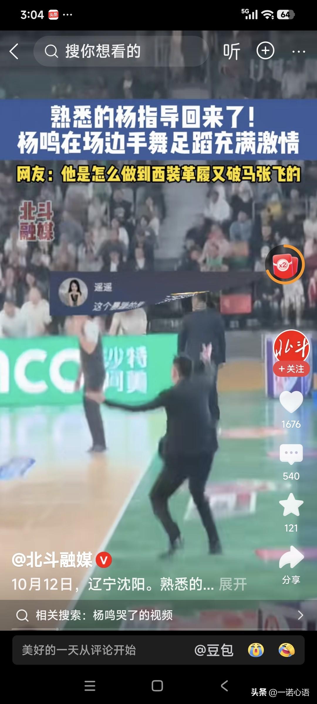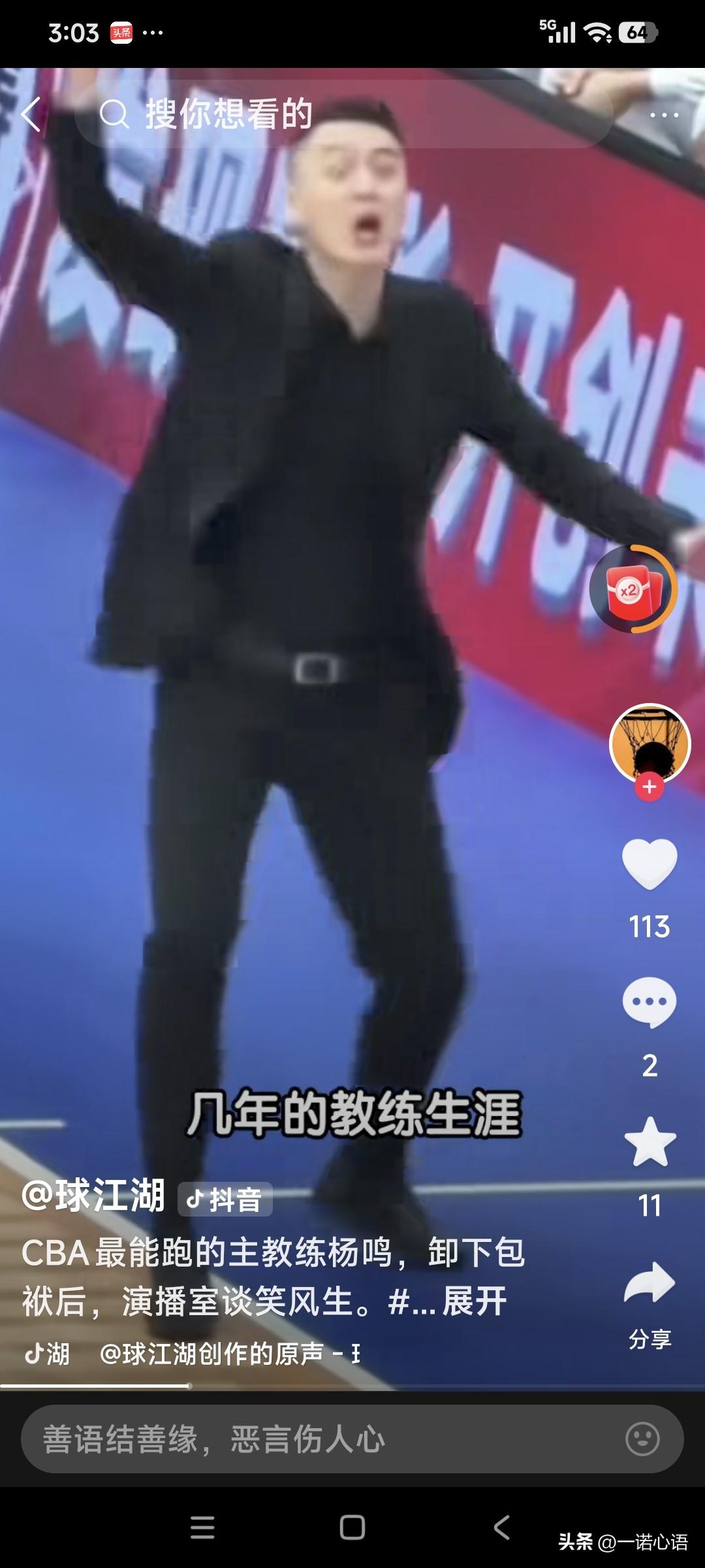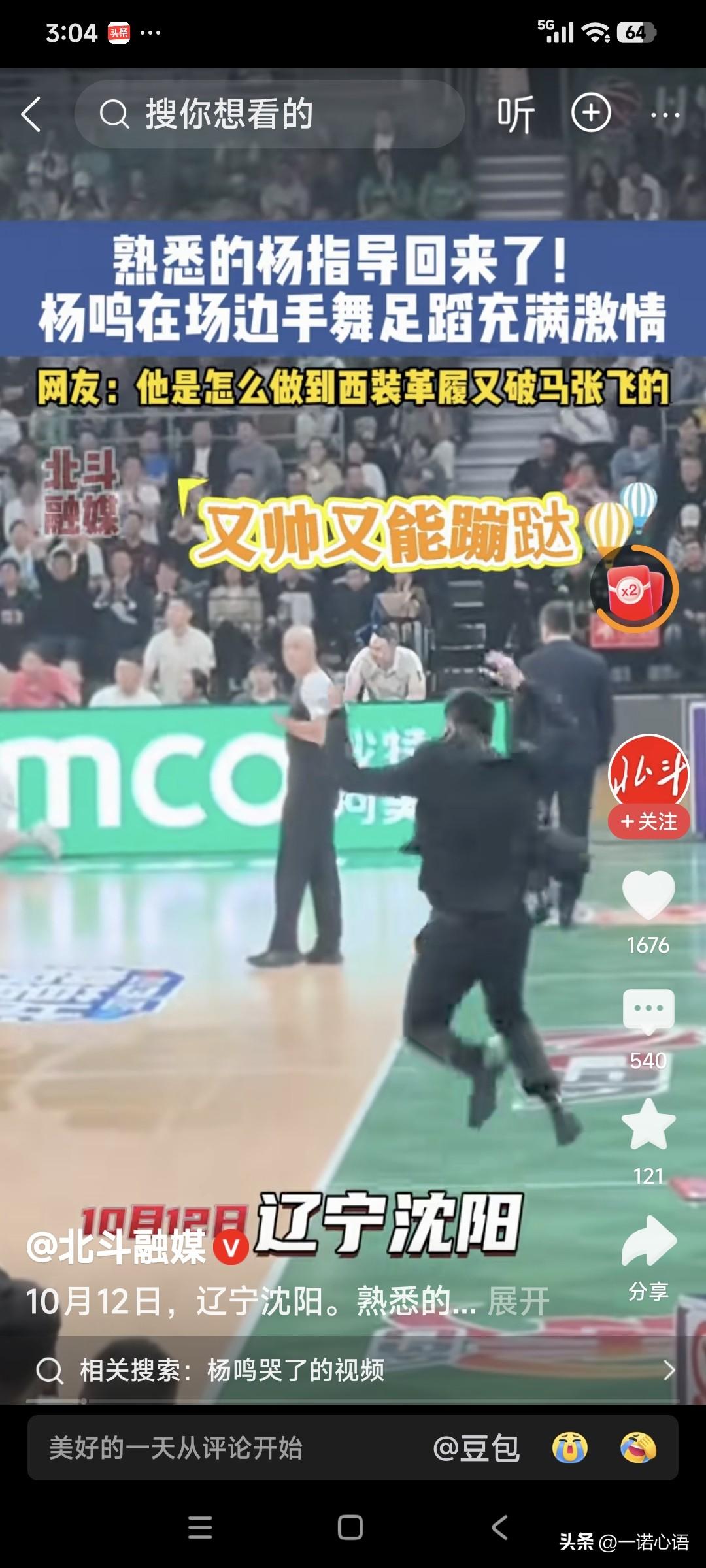 听了杨明解说辽宁队对北京队的比赛,感觉杨明是真专业,真有才。 现在坐在直播间的杨明,理性、客观、透彻、儒雅、文质彬彬。 而以前在赛场边的杨明,时而手足舞蹈、时而愤怒异常、时而上窜下跳、时而满面春风…… 这个人真的是很奇怪,在不同场合,不同环境,就像完全不同的两个人。 你说同样的一个人,咋就能做到一会儿帅气儒雅得,一会儿破马张飞的呢? 动如脱兔,静如处子,说的就是他这种人吧!