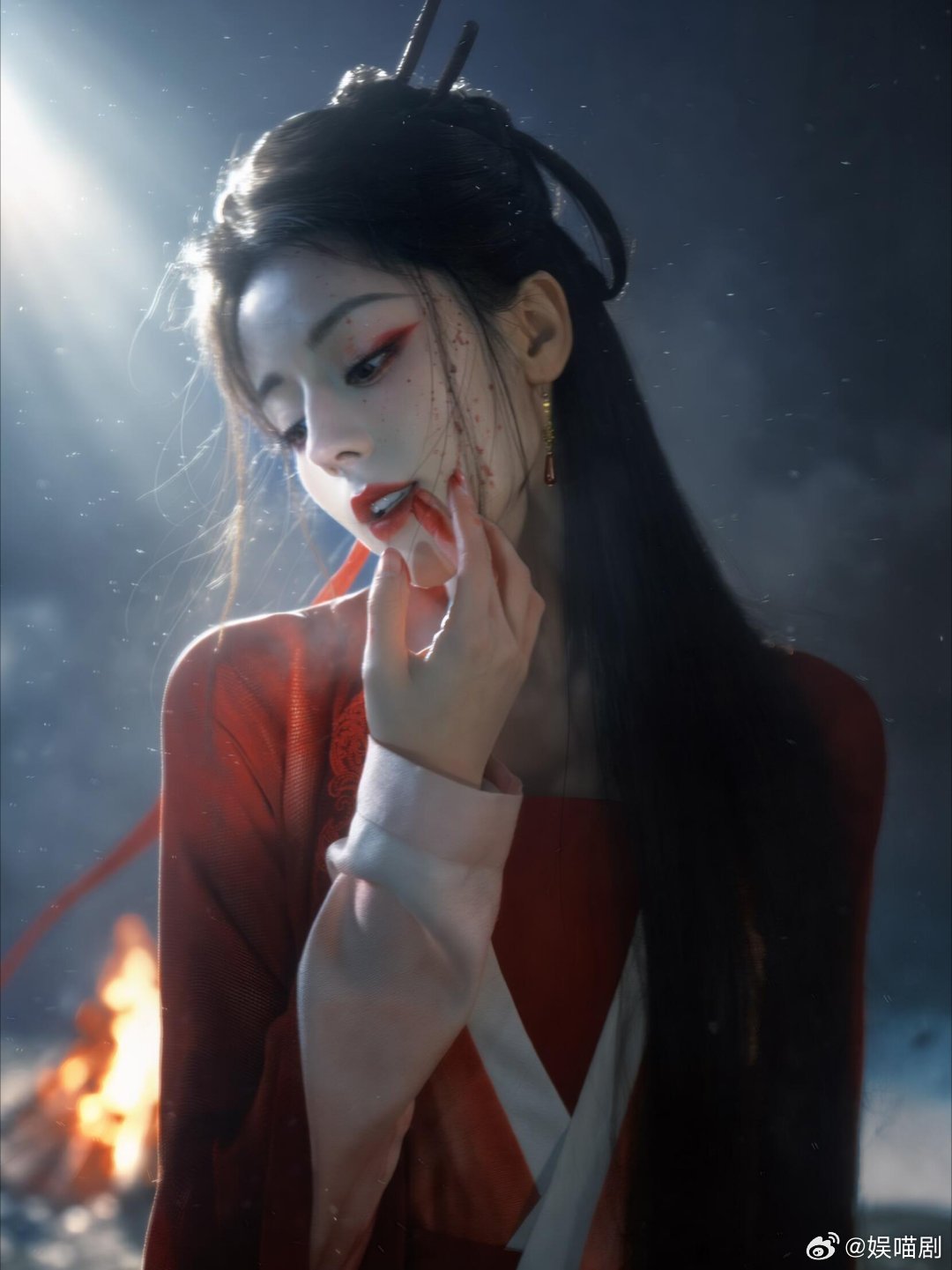 热巴贺思慕孤独又灿烂的神 热巴的红衣造型又仙又媚,和现在贺思慕的鬼王感居然莫名契