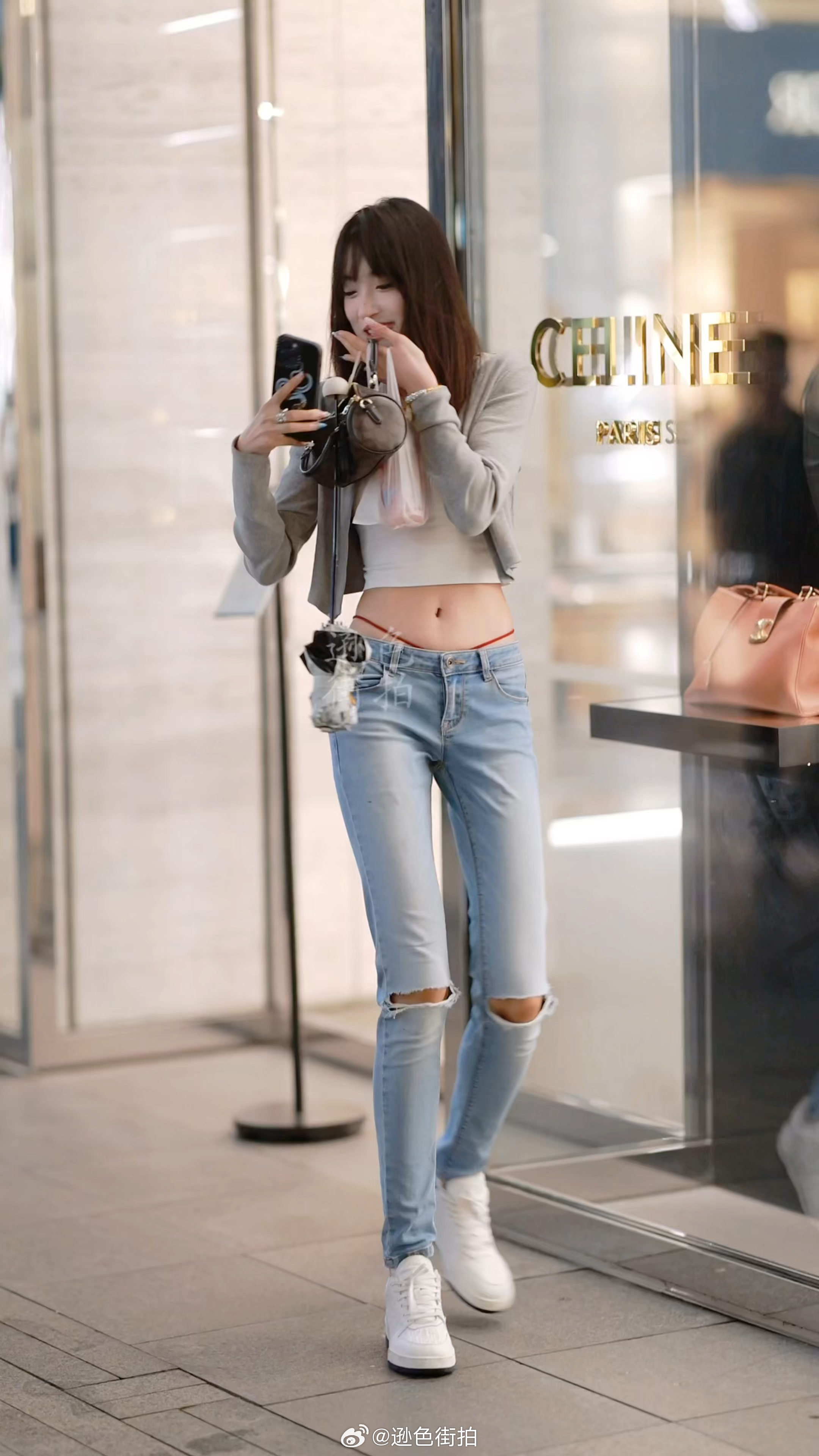 顶级街拍美女绘梦长廊帆布鞋配肉丝