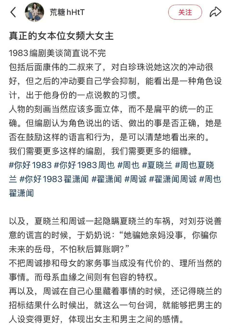 你好1983真正的女本位大女主你好1983做到了真正的女本位大女主 夸编剧已经夸