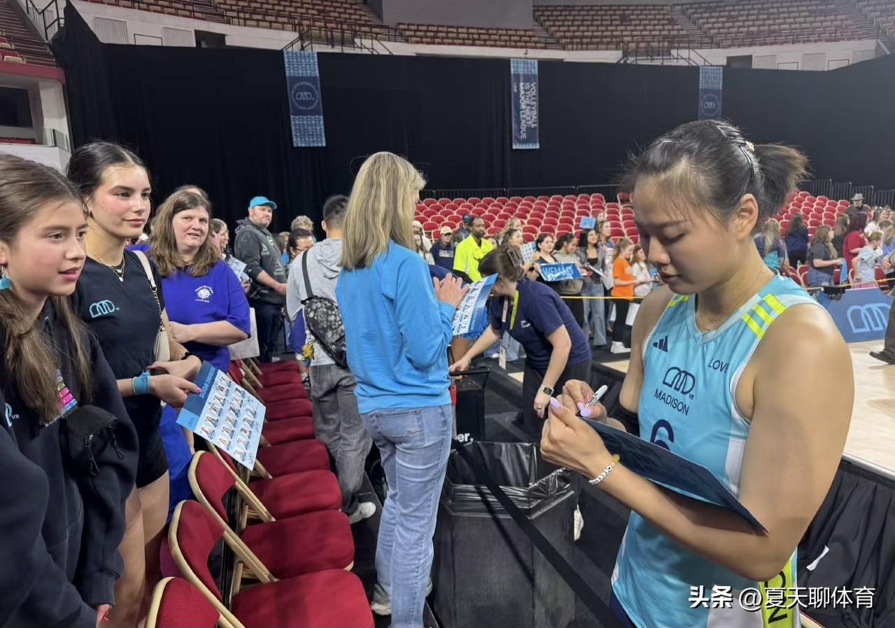 龚翔宇在国外也是收获了一大批粉丝!每场比赛后,龚翔宇都在认真宠粉,签名,合照……今天又带领着麦迪逊队,轻松横扫排名第一的休斯顿,小宇首发打满全场,15扣9中2拦,11分,防守起球率100%,这几场小宇的状态越来越好了,伤病也在慢慢恢复!美国女排联赛很快也将结束,龚翔宇距离回国又近了一步!