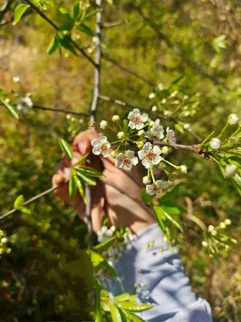 在我山居的无人村,后山有一棵不太起眼的野果树,它结的果子有点奇怪,有点像梨,又有点像山楂,但个头很小,也就蓝莓般大小,圆滚滚的坠满枝头 去年秋天进后山时路过,摘了一颗尝了下,入口又酸又涩,以至于之后就径直无视它了,很多次从它身旁走过,再也没去采摘过 直到有一天,随手拍了张照片发在朋友圈,一位广西的朋友看见,说这个叫糖梨子,要等到完全熟透,果肉变成黑色之后才会很甜,若等不及自然熟透,就得用白糖或者红糖煮着吃,或是用清水浸泡7日去涩之后才能吃,他说这种糖梨果,放在几十年前的农村,算得上是孩童们很奢侈的一种零食了 前些天,我特意又去后山看了下,糖梨树依旧开花了,素白的花朵细碎又清浅,好看极了,偶尔有几只蜜蜂嗡嗡的飞过,又轻轻的隐入花簇中,只剩下满树白花,在空山寂寂里轻轻摇曳 看这满树繁花,待到秋天,应该又会满树金黄,果子缀满枝头的吧?只是再也不会有踮脚张望的孩童再来采摘它了,年年开花,年年结果,再独自零落成泥……