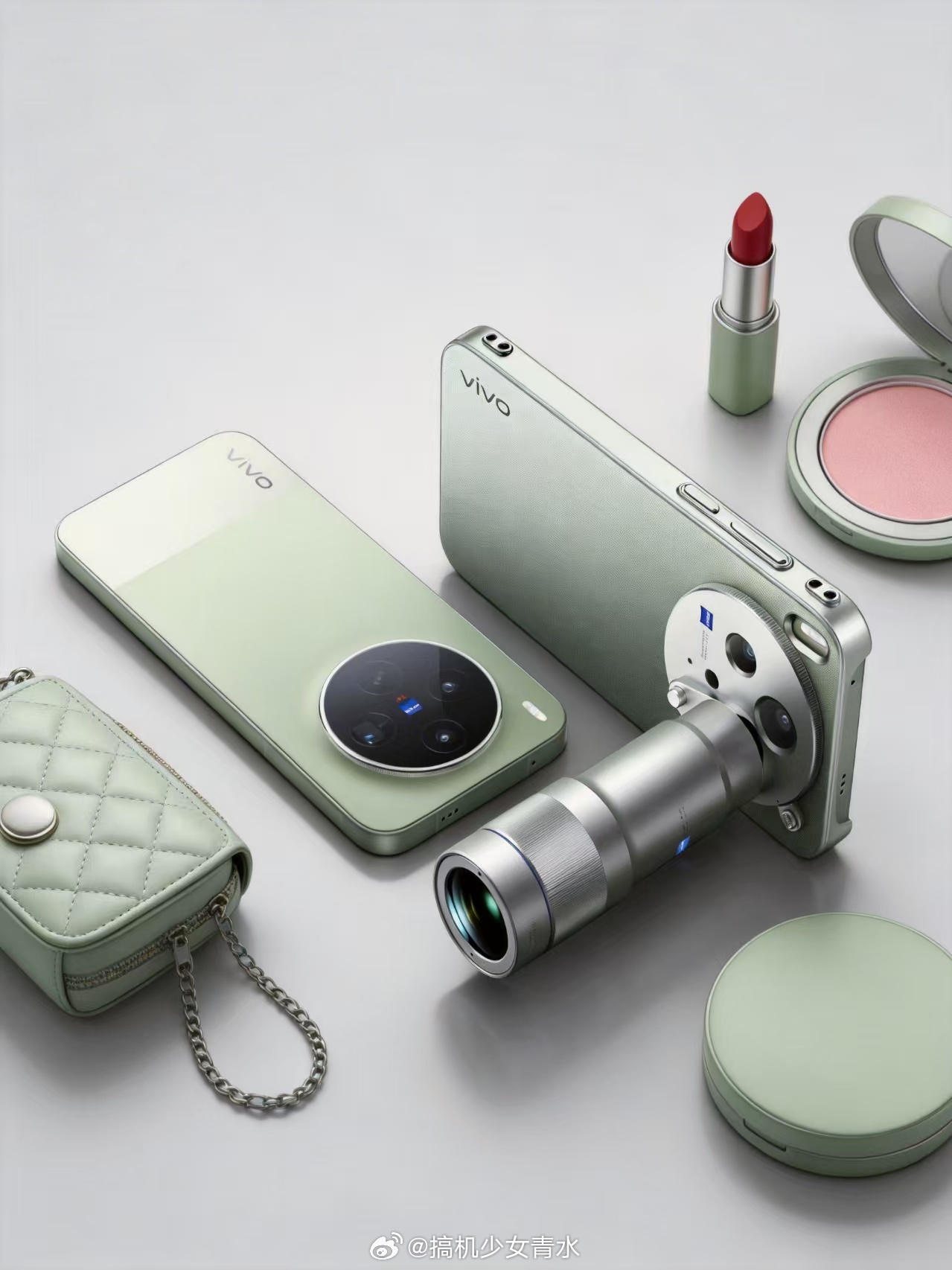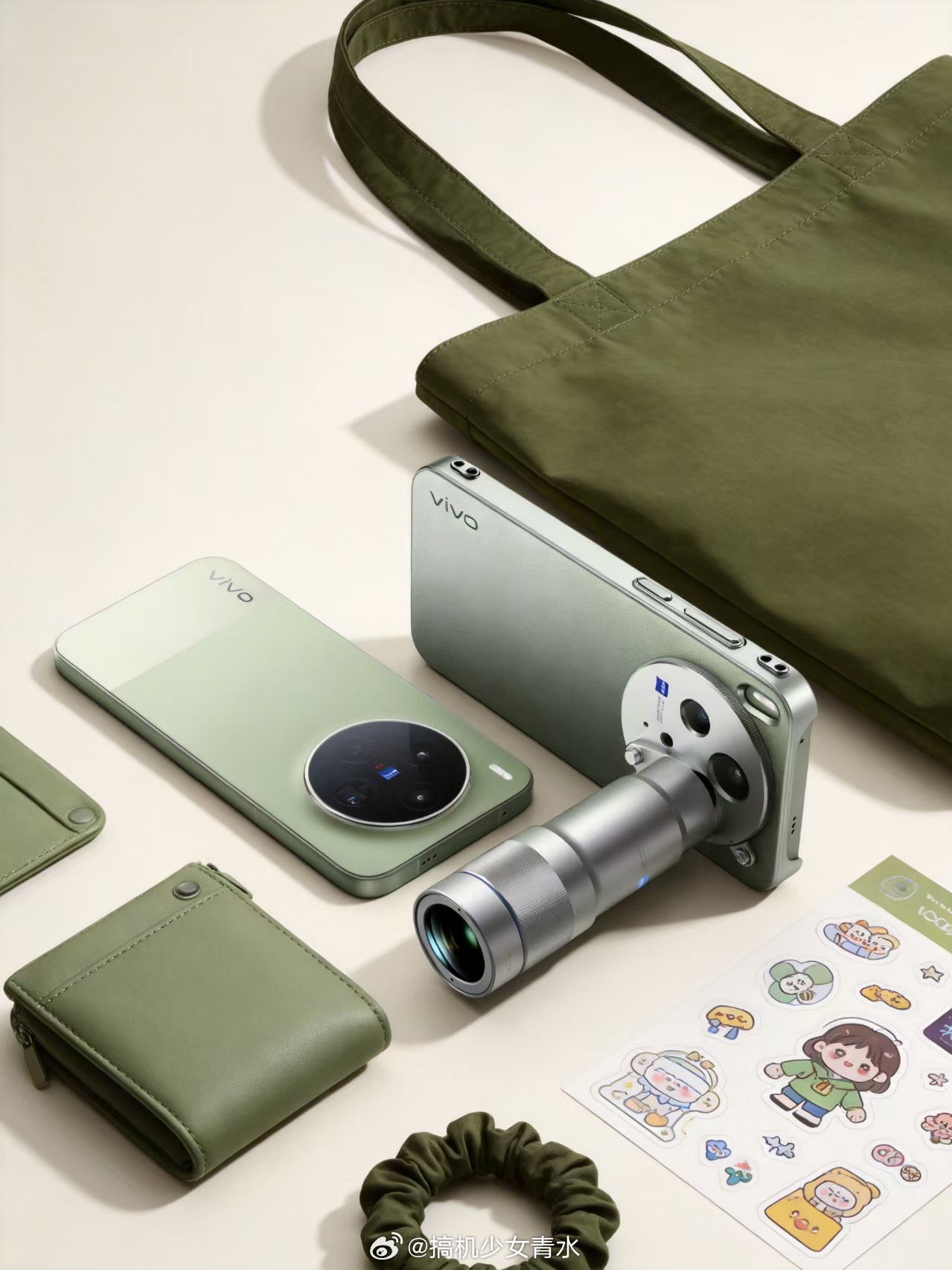 高级有质感,绿色拼接设计感拉满,徕卡范儿十足,专业V单就该这么好看嘛!(前三张是vivo产品经理韩伯啸微博的原图;后几张是AI二创的,好看!)