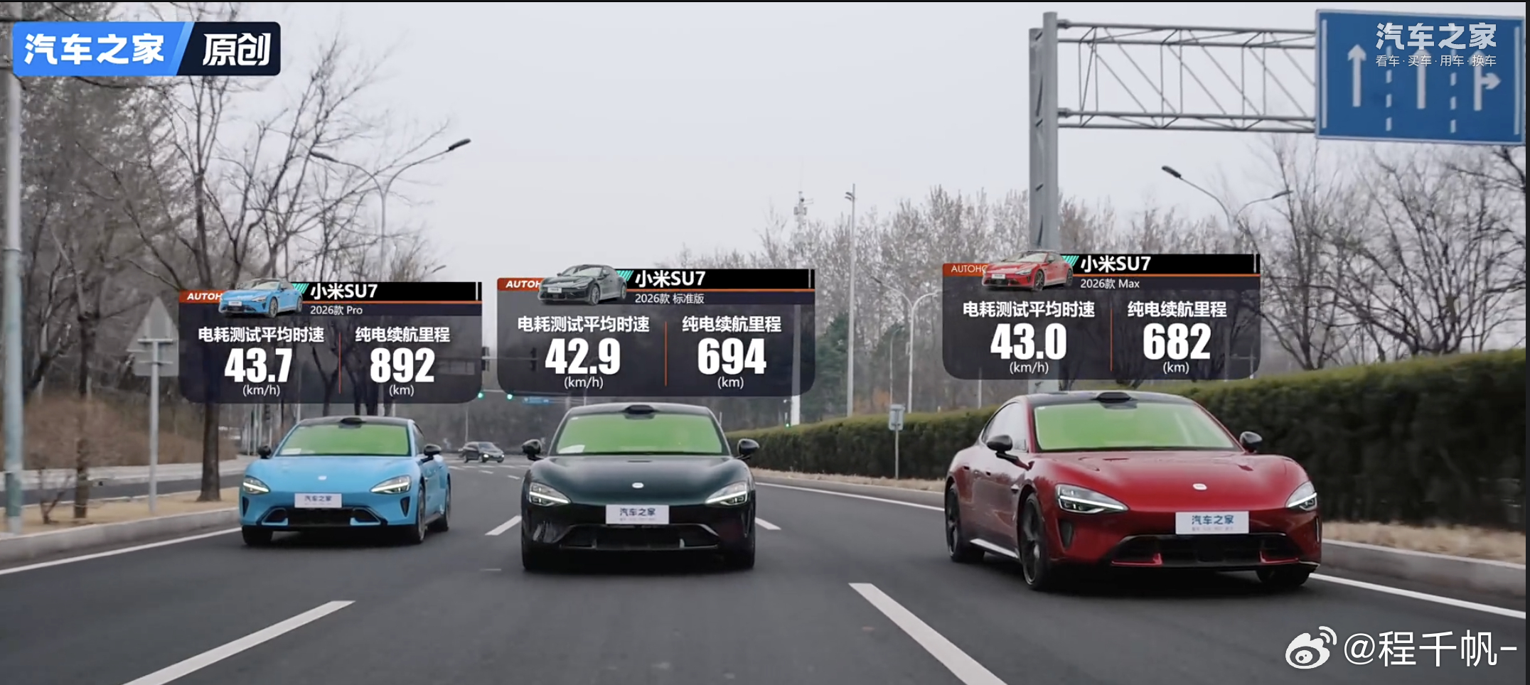新一代SU7续航可以说是顶中顶了,易车、懂车帝,汽车之家都做了测试,最长跑出892公里
