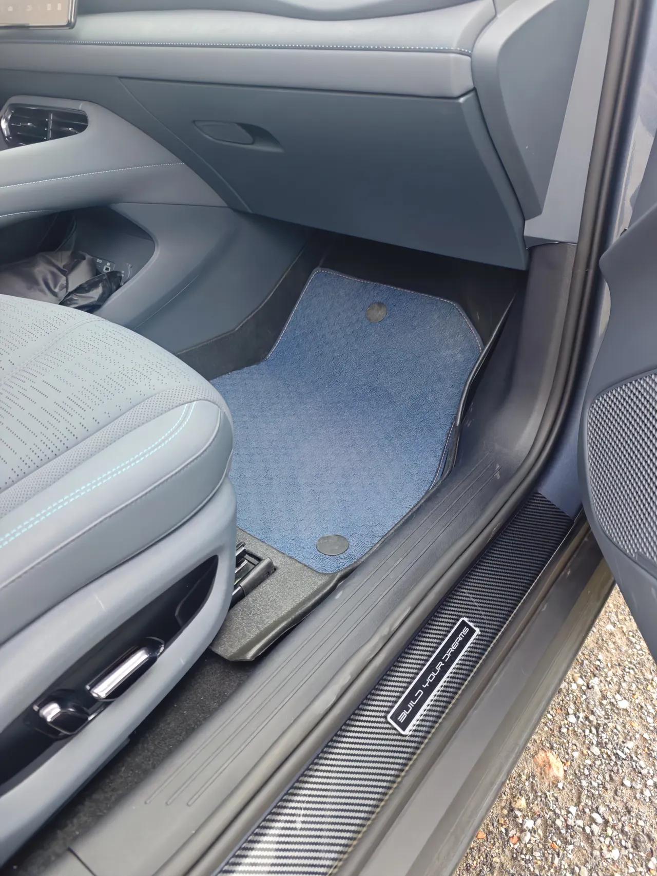 不知道大家的4s店送的是什么脚垫,我的脚垫就只有下层的一个塑料壳,没有上层脚垫。而且质量还不咋地,贴合度也不好。 本来挺帅的一辆车,让这个脚垫搞得是真难看,一上车一点档次都没有。而且颜值是真低,黑色大塑料脚垫,用起来也不方便。 - ●车辆信息🚗🚗 海豹06gt,505plus非智驾版本,新车指导价14.68w,搭载是比亚迪磷酸铁锂短刀电池,电池容量59.52kwh标定续航505km,后驱单电机马力215匹,最大扭矩310n.m。车长4630mm,轴距2820mm。空车车重1850kg。 - ●配件购买💸💸 - 比亚迪app商城的脚垫质量是不错,但是价格太贵了,我这一套带上层脚垫的要369块钱,我是有点商城积分,但是都不够。 所以就选择在网购平台买一下得了,反正我是有下层脚垫的,再买一套上层脚垫,直接安装就行了。确实比较便宜,最后花了55块钱买了3条脚垫,材质是tpe提花脚垫。 - ●配件明细⚙️⚙️ - 主要配件就是一条主驾脚垫、一条副驾脚垫、一条后排脚垫,我买的是tpe提花脚垫,选择的蓝色的,主要是和我的车颜色比较搭。 出了三条脚垫,其他还有一些服转安装的工具。包括一个打孔器、一些脚垫卡扣。配件比较简单,一看就知道咋操作。唯一不太好用的就是这个打孔器,就是一个钢管做的,的材质比较软锤几下头就变扁了。 - ●安装过程🔧🔧 因为他的这个是要我们自己打孔的,原厂脚垫和上层脚垫毕竟不是配套的,没有原装卡扣。 所以要先用打孔器给上下层脚垫打一个孔,安装上他的卡扣,方便以后的拆卸,而且防止脚垫总是来回移动。 打孔的时候注意打孔位置,然后注意上下层脚垫是对齐的。然后一定要把下边垫一个报纸,防止打孔器锋利的那一头损坏了。 等用打孔器把上下层脚垫贯通后,在安装脚垫卡扣,卡扣安装很简单。安装后就可以直接使用了。 - ●使用感受❤️❤️ 安装后我感觉颜值是挺好的,比原来看起来高端多了,整体颜值上了一大截。提花脚垫比较有质感,也比较耐磨损。 而且现在脚垫上如果还有脏东西,尘土、沙粒之类的直接把上层脚垫拆下来倒出去就可以了,不用费劲吧啦的把脚垫整个拆出来。 不过不好的一点就是,这辆车的前排座椅下边空间很小,后排的脚垫往里一塞就直接填满了,脚垫往里安装起来也很麻烦。【来自懂车帝车友圈】
