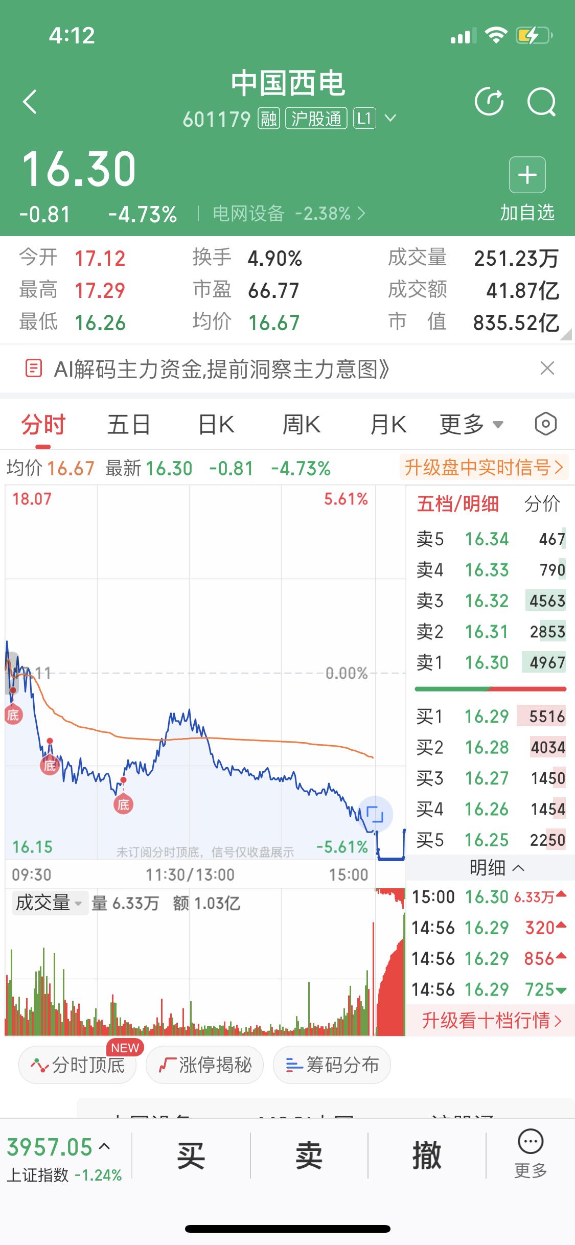 中国西电还能看吗?能! 目前它综合中性评分 50,打败了 43%的股票。短期处于强势上涨过程,可逢低买进;中期回落整理且下跌有加速趋势。近期平均成本 16.28 元,多头行情中处于回落阶段。 从资金看,近 5 日资金总体呈流入状态,高于行业平均,5 日共流入 12894.55 万元。只要兆新股份下周一还涨停,板块有小弟跟上,西电就有机会。 但要是板块凉了,那它也危险。目前它总市值 828.34 亿,大家可以多留意其后续走势。