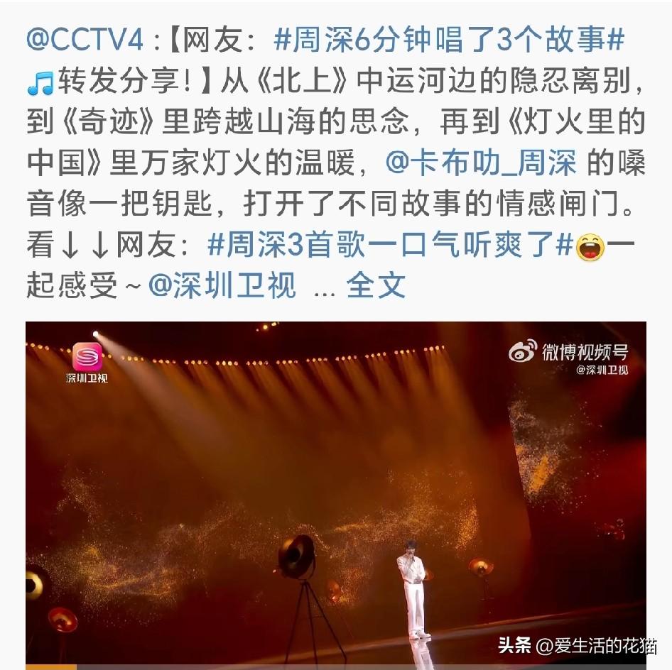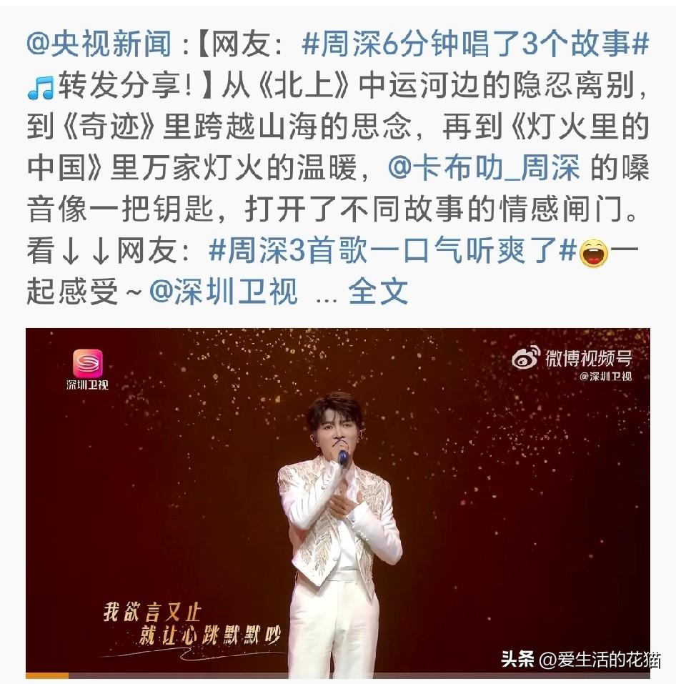 新华社和央视新闻都在发,就点进去听了下,真的一口气听爽了。 深深嗓音像把钥匙,每个故事的情感闸门一拧就开,这种串烧最难的不是高音,是在不同情绪里丝滑切换,他偏偏能做到毫无痕迹,举重若轻。 央媒这不是单纯在夸深深唱功,是在说,真正的歌手,能用声音把中国人的故事讲进人心里。好听,真听爽了!