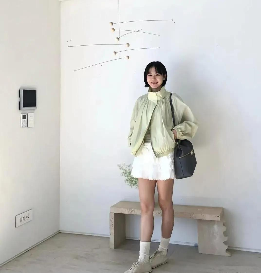 孙艺珍剪短发后直接嫩回18岁! 浅绿夹克+白短裙,清新又减龄,这状态谁看了不迷糊~ 孙艺珍 春日减龄穿搭