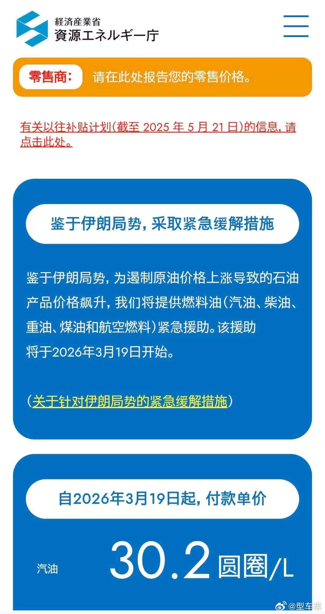 全国多地加油站排长队刚去加油,油价又回到160日元(人民币7.5块)左右,好像完全没受局势影响。但其实是政府在暗中补贴。霍尔木兹海峡闭锁后,日本从3月开始重新启动补贴,目前每升油价补30日元左右,把全国平均油价控制在160日元/升这个区间。如果没有这层缓冲,按最近国际油价的水平,日本油价已经接近甚至超过190日元了。全国多地加油站排长队