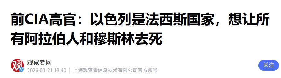3月20号土耳其直接爆出惊天大瓜,前美国中情局分析师拉里·约翰逊被问起以色列打这场仗的终极目的时,半点没藏着掖着,一句话炸翻全网:以色列的狼子野心,就是要让所有阿拉伯人和穆斯林都死光! 这句话一出来,立马就引发了全网热议,很多人不敢相信,但拉里·约翰逊紧接着又爆出了更多内幕,把以色列的真面目扒得一干二净,每一句话都戳中了要害,也印证了他最开始说的那句话,没有一点虚假。 他说,以色列这些年一直喊着“自我保护”,说自己是因为被袭击,才不得不反击,才发动这场战争,其实这些全是骗人的鬼话,没有一句是真的。 说白了,以色列就是被犹太复国主义的谎言给洗脑了,真把自己当成了中东地区的老大,眼里没有任何国家和人民,骨子里就是贪得无厌,一门心思就想抢别人的地盘,想在中东当霸主,想把所有不属于自己的东西,全都占为己有。 这里面的犹太复国主义指的是一种犹太民族的主义思潮,一百多年前就有了,核心就是想让全世界的犹太人,都回到巴勒斯坦这块地方,建立属于自己的国家,而且还认为这块土地,只能是犹太人的,其他民族的人都不该在这里生存,说白了就是极端的排他主义,为了自己的利益,不惜牺牲别人的一切。 以色列就是靠着这种思潮建立起来的,这些年一直没停下抢地盘的脚步。从2023年10月开始,以色列和巴勒斯坦爆发了大规模冲突,表面上说是哈马斯突袭了以色列,以色列是在自卫,但实际上,这只是以色列找的一个借口,目的就是趁机扩大自己的势力范围,抢夺加沙地带的土地,屠杀当地的阿拉伯人和穆斯林。 大家可以看看实际情况,自从冲突爆发到现在,截至2026年3月,以色列对加沙地带的袭击,已经造成了7万多人死亡,17万多人受伤,这里面大部分都是无辜的平民,有老人、有小孩、有妇女,他们没有任何过错,却要承受以色列的炮火袭击,家破人亡、无家可归。 以色列嘴上喊着“人道主义”,却一边全面封锁加沙地带,切断了当地的水、电、燃料供应,让加沙人连基本的生存都成了问题;一边又不断发动空袭,轰炸加沙的难民营、医院、学校,不管是平民还是救援人员,都不放过。 更过分的是,以色列还计划占领加沙75%的面积,把加沙的200多万巴勒斯坦平民,集中迁移到三个小区域,这不是抢地盘、赶尽杀绝是什么? 拉里·约翰逊还爆料,以色列根本不是什么受害者,他们就是野心太大,被犹太复国主义洗了脑,觉得自己高人一等,觉得所有阿拉伯人和穆斯林,都不配和他们共存,所以才不惜发动战争,大肆屠杀,就是想把这些人全部消灭,彻底占领整个中东地区,实现自己当霸主的野心。 可能有人会问,以色列怎么敢这么嚣张?其实说白了,就是他们太自信,也太霸道,真把自己当成了地区老大,不把任何国家和国际规则放在眼里。国际社会多次要求以色列停火,联合国也通过决议,要求以色列停止在加沙的军事行动,开放口岸提供人道主义援助,但以色列根本不听,依然我行我素,该轰炸还是轰炸,该屠杀还是屠杀,丝毫没有收敛的意思。 拉里·约翰逊作为前美国中情局分析师,能说出这些实话,确实不容易,毕竟他以前身处的位置,知道太多内幕,也清楚以色列和美国的关系。 他之所以敢把这些话说出来,就是不想再看着以色列继续作恶,不想再看着无辜的阿拉伯人和穆斯林被屠杀,不想再让谎言蒙蔽全世界人民的眼睛。 这件事虽然只是一次爆料,但却让全世界人民看清了以色列的真实面目。他们嘴里的“自我保护”,全是骗人的借口;他们所谓的“人道主义”,全是虚伪的伪装。 他们的真实目的,就是被犹太复国主义洗脑,贪得无厌地抢地盘、当霸主,甚至想让所有阿拉伯人和穆斯林都死光。 现在,越来越多的人开始看清以色列的狼子野心,越来越多的国家开始谴责以色列的暴行。不管以色列再怎么伪装,再怎么嚣张,他们的野心终究是藏不住的,他们的暴行也终究会受到全世界人民的谴责和惩罚。 毕竟,公道自在人心,任何想靠屠杀、靠抢地盘实现野心的人,最终都不会有好下场,也终究会被钉在历史的耻辱柱上,永远被后人唾骂。