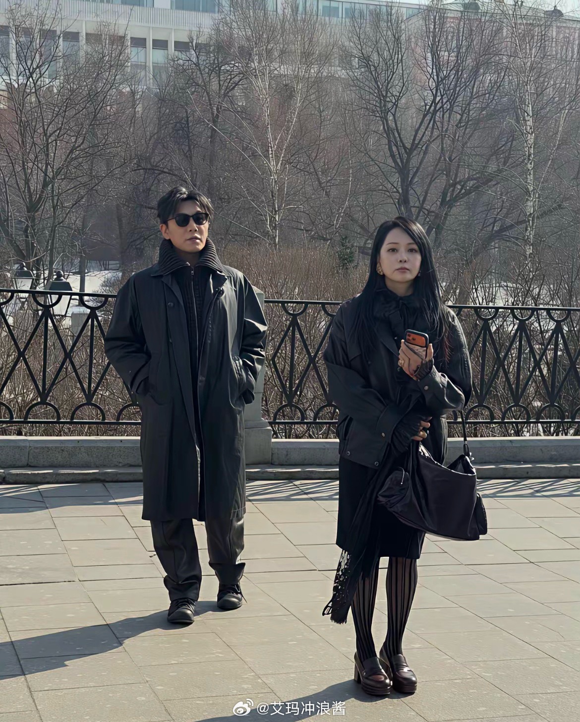 58岁伊能静和老公秦昊现身莫斯科参观克里姆林宫,她的打扮好贵气,穿着皮衣外套和条