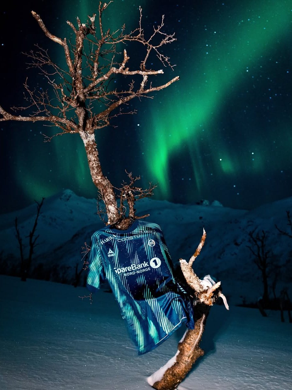 挪威球队,地处北极圈内的特罗姆瑟新款客场球衣,灵感来自极光。在不同的光线下,队徽会呈现出不同的颜色。