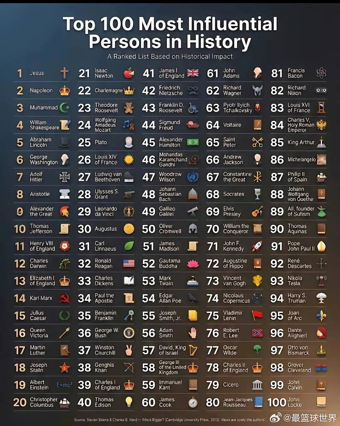 人类历史上100大最具影响力的人物,猜猜有没有中国人上榜呢?