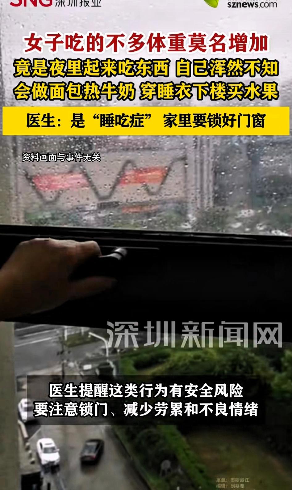 女子吃的不多体重莫名增加,竟夜里起来吃东西,自己却浑然不知,会做面包热牛奶,穿着睡衣下楼买东西。检查后得知自己得了“睡吃症”。医生:得了睡吃症,家里一定要锁好门窗。 浙江杭州的张女士可太冤了,明明吃得不多,体重却蹭蹭涨。去问医生才发现,她得了“睡吃症”。 一年多来,她时不时夜里起来吃东西,自己却浑然不知。监控里,她会做面包、热牛奶,还穿睡衣下楼买水果,把店主惊到了。 这睡吃症就是“身体在行动,大脑没记忆”,人群发病率约 4%,年轻女性更常见。很多人觉得这没啥,其实潜在风险不小。 张女士这情况给大家提了个醒,要是体重莫名增加,说不定也有这“神秘加餐”呢。 看来家里要安装个监控了,只听说过“梦游”,“睡吃症”还是第一次听说,看了张女士的症状真是又好笑、又吓人,还好只是起来加餐没干别的,要不然太吓人了。毕竟发病时发生什么自己都不知道,只是做点夜宵,没干什么危险的事。