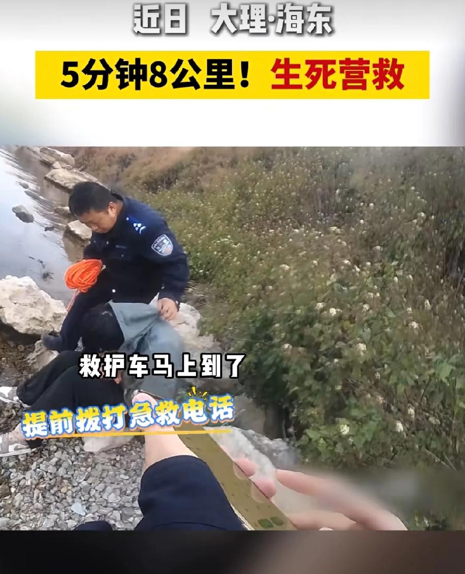 📍🆘🚨一男子欲大理洱海轻生,命悬一线……5分钟8公里!民警生死营救 清晨8点,洱海悬崖边,一名年轻男子欲轻生,落水后失温,生命危在旦夕……近日,大理市公安局海东派出所接到110指令,称文笔村洱海边上有一年轻男子掉入洱海。 接警后,民警仅用5分钟便赶到8公里外的现场,迅速在洱海边找到游客蔡某某。只见他全身湿透、体温过低且言语含糊。民警将其搀扶到警车里,帮他脱下湿衣,披上警服保暖。 落水游客情绪极为低落,民警耐心劝慰。待其情绪平稳后,将他送往医院接受进一步救治。因救援及时,蔡某某经治疗后康复出院,于3月13日离开大理。 家属专程致电,对民警的快速反应和全力救助深表感谢。生命只有一次,幸好他们争分夺秒抢回了生机。 轻生孩子