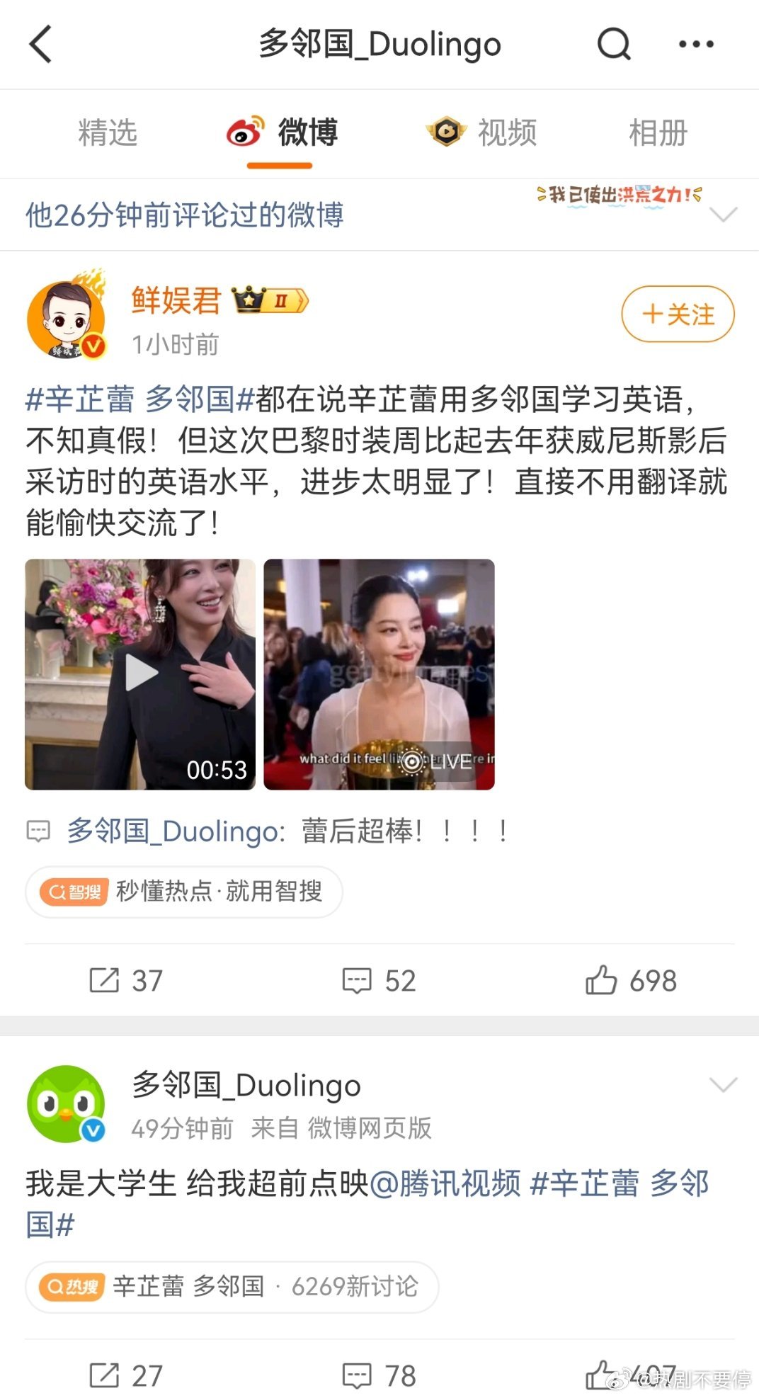 辛芷蕾 多邻国我就知道这只大绿鸟,不会放弃任何一个蹭热度的机会情感浓度有点太高了