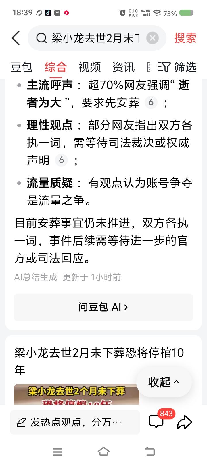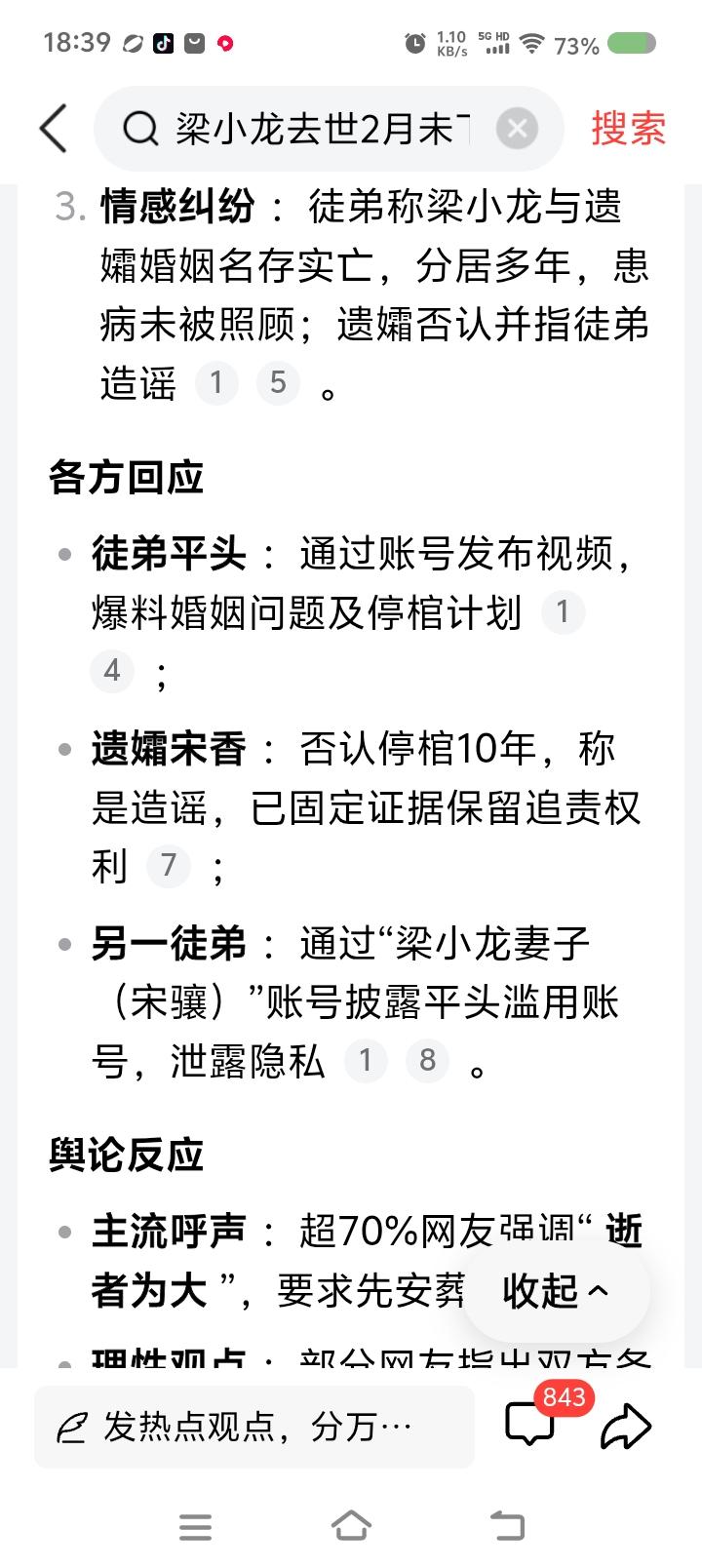 梁先生迟迟未下葬,为什么?—— 据报道,演员梁先生去世多日,迟迟未下葬。他的某个徒弟似乎还在用梁先生的平台账号,并评论梁先生家事。另一个徒弟似乎站在梁先生家属一边,要求某人停止使用账号…… 可能会牵扯官司。 点评: 悲哀。