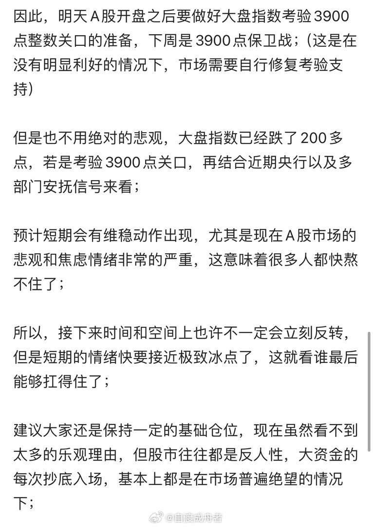 受央行利好政策影响,下周一A股有望低开后震荡企稳,呈现结构性行情,但外围局势等因素仍带来一定不确定性。以下是3点提醒: