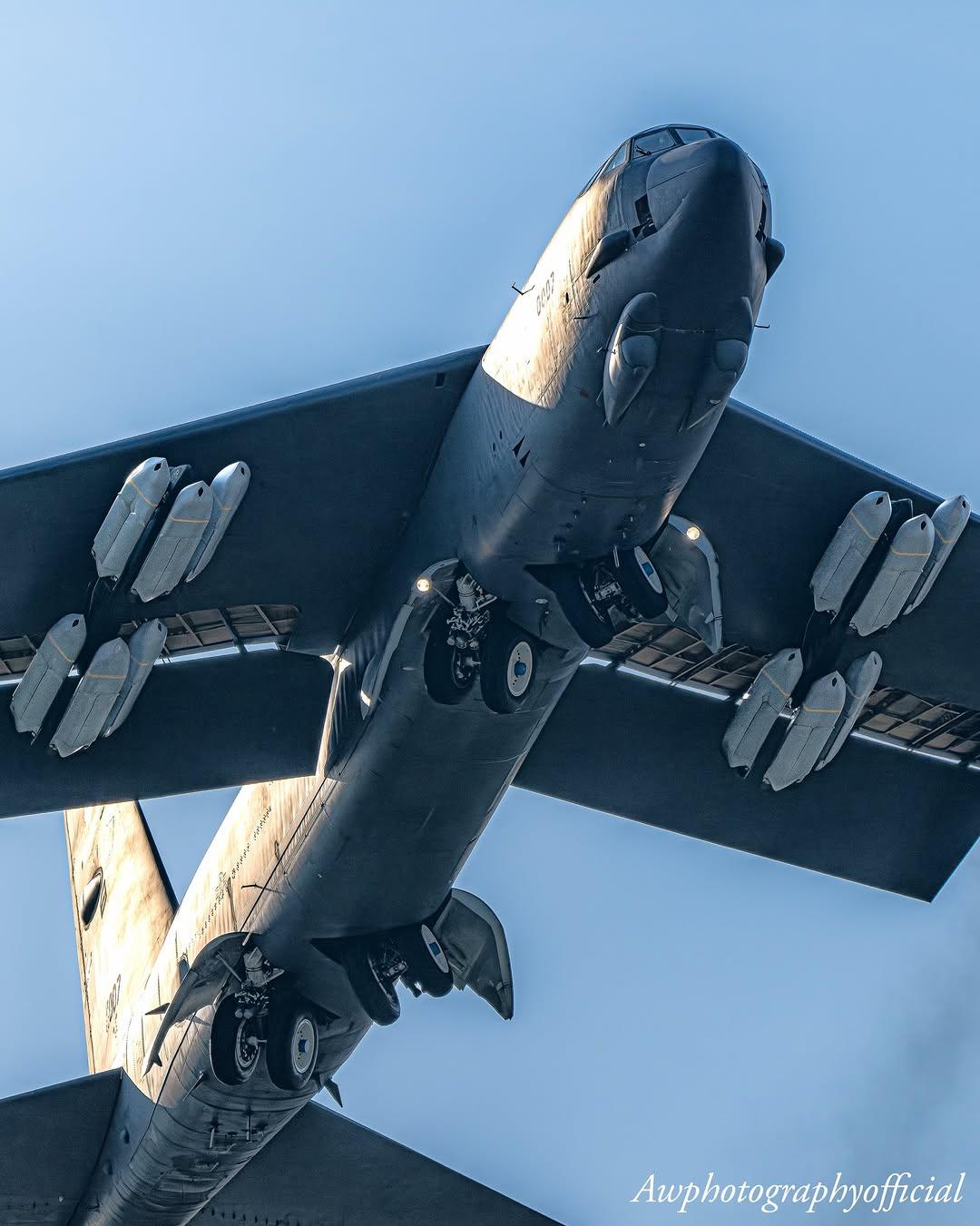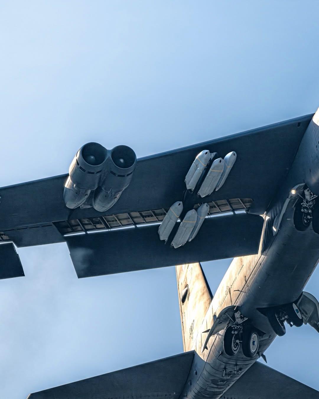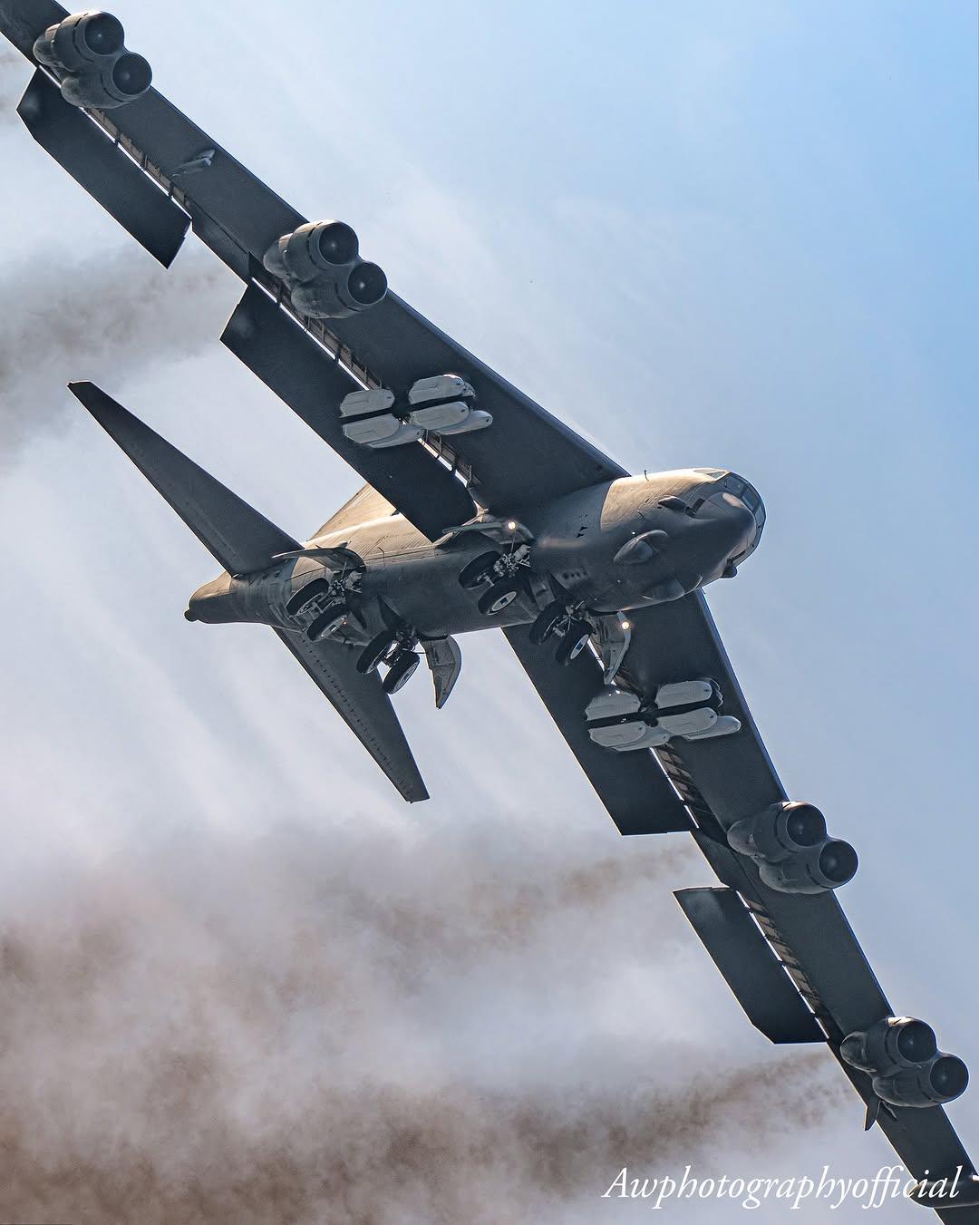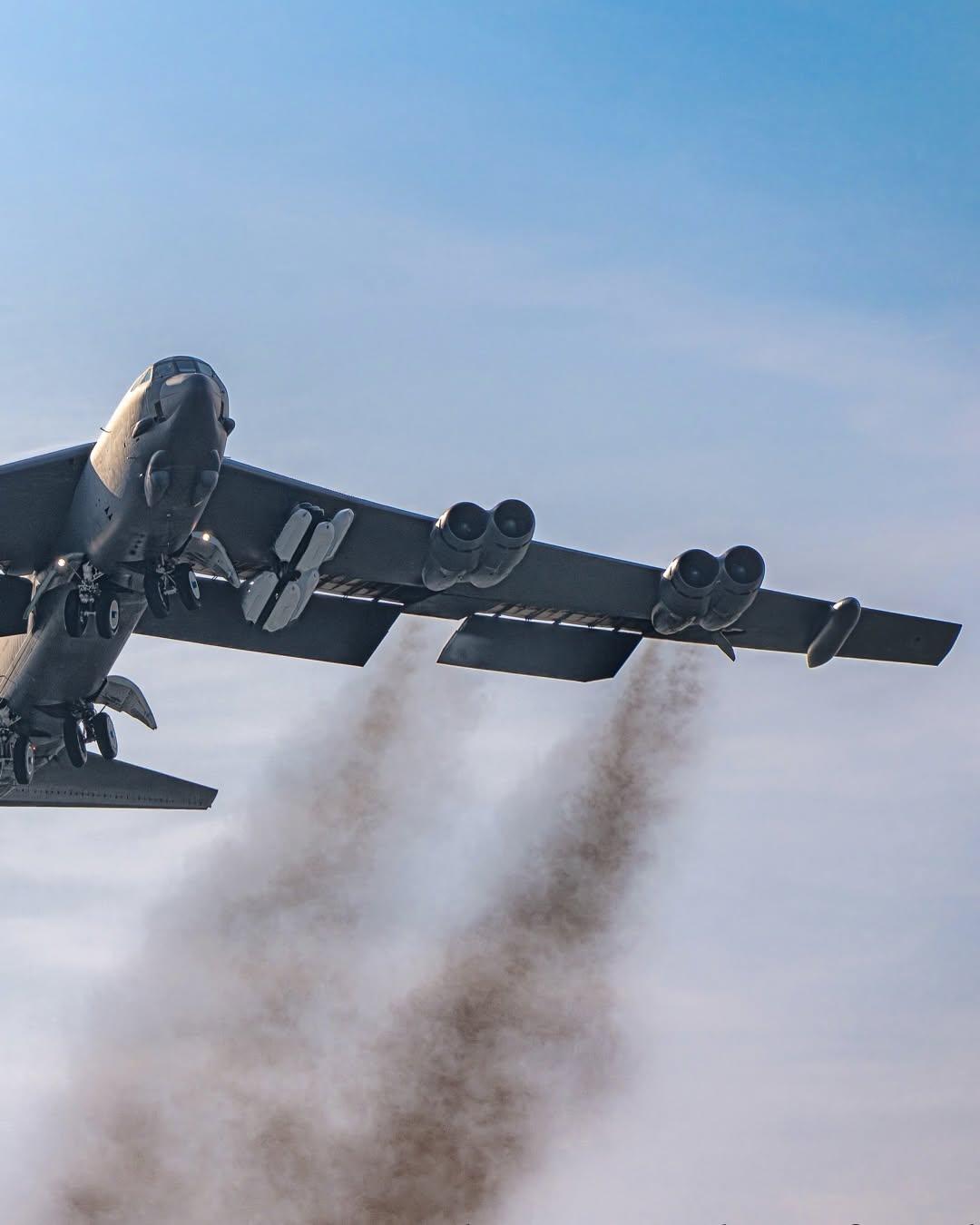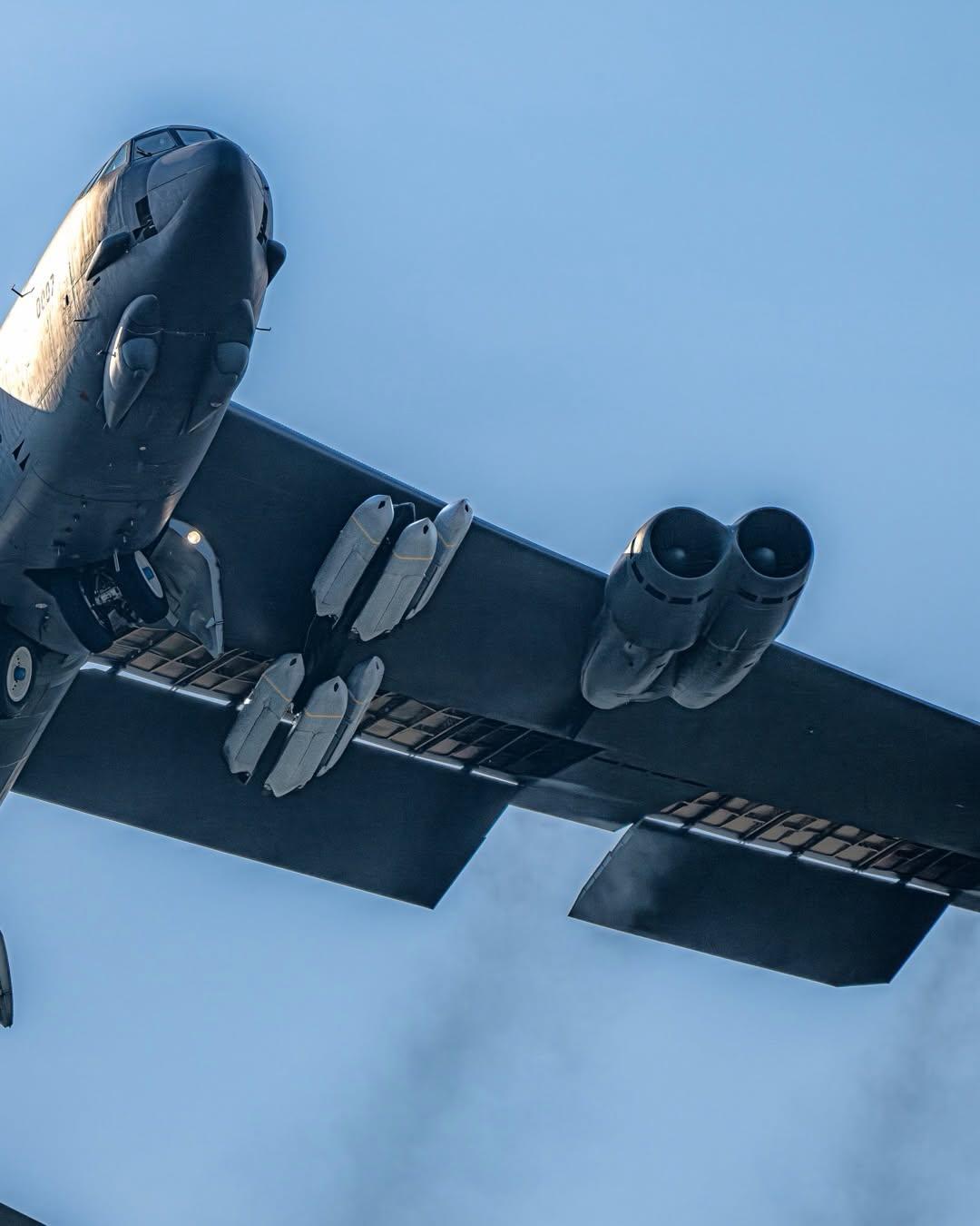 2026年3月22日,一架隶属于美国迈诺特空军基地(Minot AFB)的B-52H“同温层堡垒”轰炸机从英国皇家空军费尔福德基地(RAF Fairford)起飞的场景。在低角度拍摄的特写照片中,清晰可见该机翼下挂载着12枚AGM-158B JASSM-ER导弹,发动机喷出的尾流也历历在目。 此次行动与美国空军自3月9日美军向费尔福德基地集结了6架B-52轰炸机和12架B-1B轰炸机,并同步运抵了大量JDAM(联合直接攻击弹药)补给;此举旨在伊朗相关局势紧张及北约演习期间,彰显美军的高度战备状态。 JASSM-ER导弹具备亚音速飞行能力,射程超过500英里;该弹采用GPS/INS复合制导系统并配备红外导引头,可搭载1000磅级的穿透式战斗部。在美国进行的测试中,该型导弹的命中率超过90%,极大地增强了美军针对防御严密目标实施防区外打击的能力。