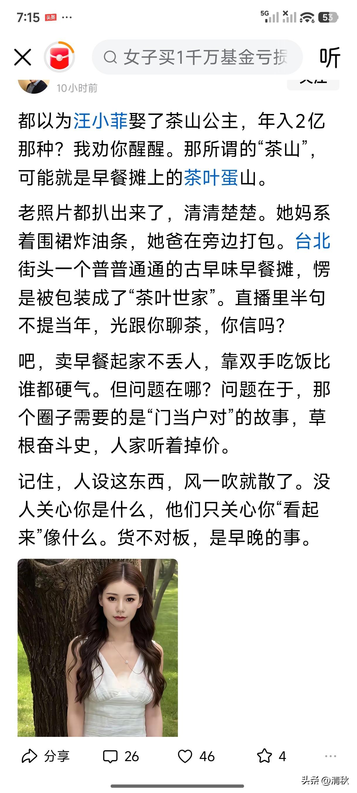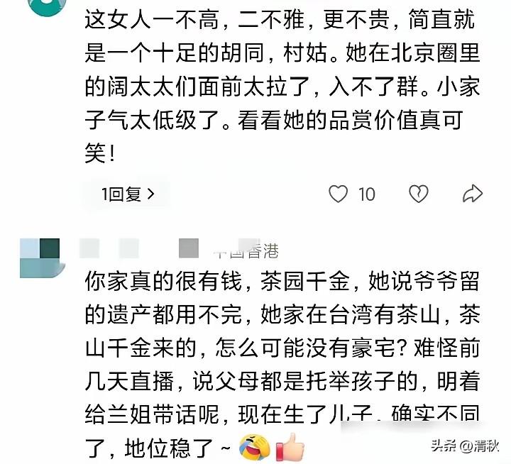 原来马晓梅不是她嘴里说的富家千金,也不是网上吹捧的清华高材生,之前她在直播间说她孩子将来她家的财产都继承不过来呢,意思是不会跟大S的俩孩子争,但现在她话里话外说想在台北买上亿豪宅,可是买不起,网友们说她在点拨婆婆,她又说她家有两套房,一套一居在出租,一套还在还房贷,网民们说豪门咋还没豪宅?我觉得马晓梅挺聪明的一个人,生个儿子傻了吗?别人没有揭你的老底,你倒是搬起石头砸自己的脚,这么看来,以前说过多少谎话,估计自己都记不清了。 现在好多带货主播为了立好人设,张嘴就来,谎话连篇,时间长了就穿帮,一两年就人设崩塌,凉凉了。