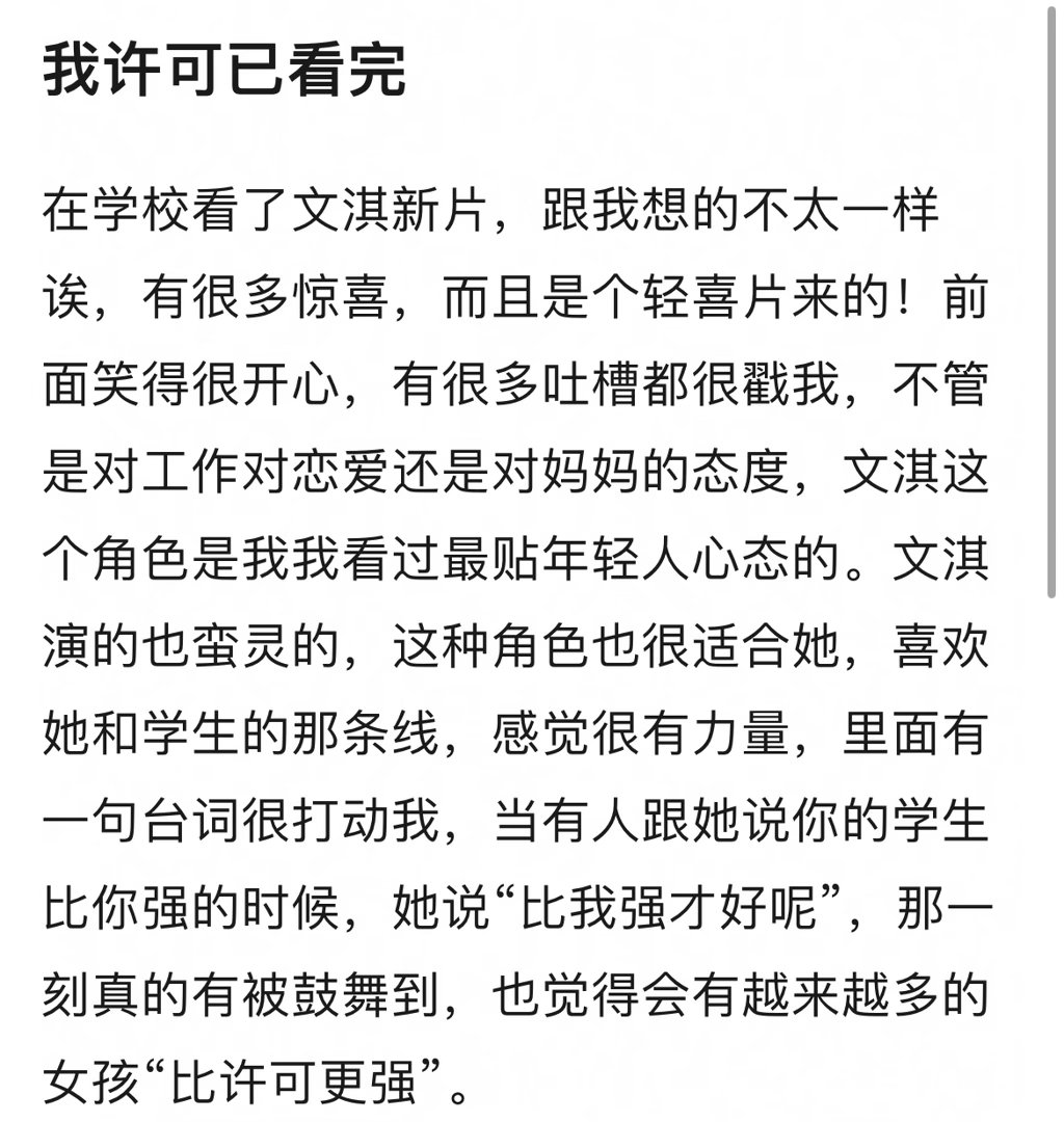 电影我许可首波观众反馈文淇新片我许可点映口碑被《我,许可》的真诚狠狠打动,从大学