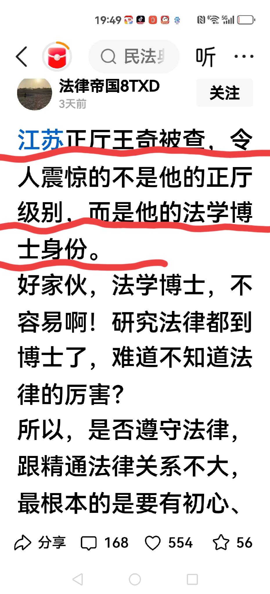 【正厅级别被查】 然而让人惊诧不是正厅级别而是他法学博士的头衔。