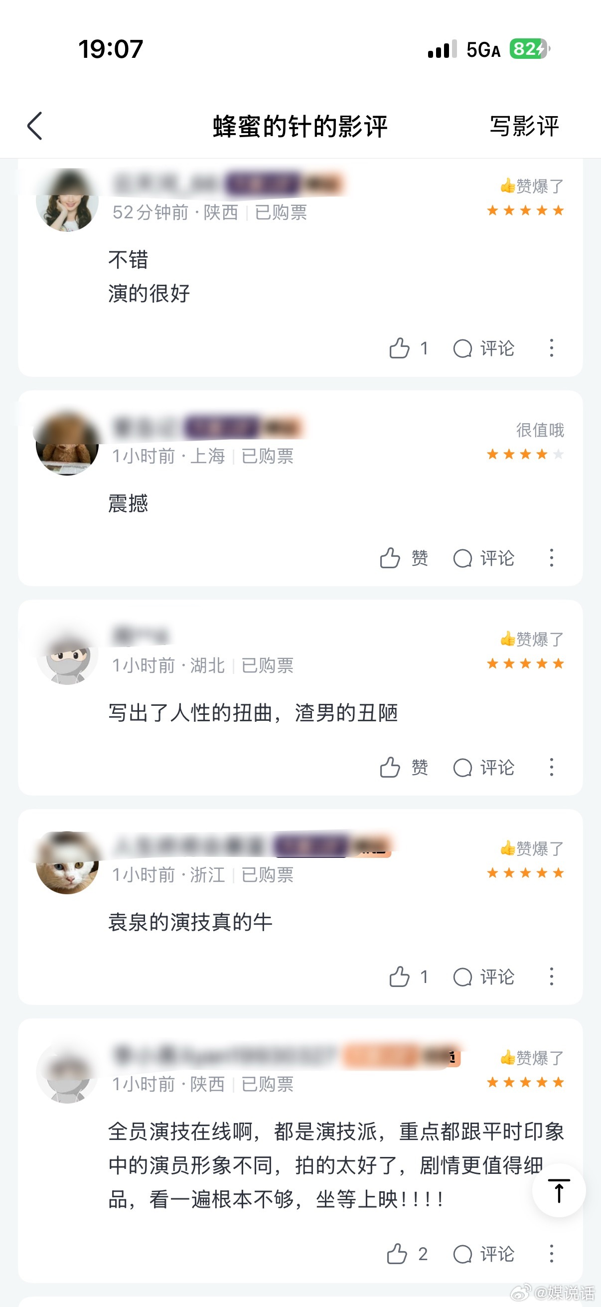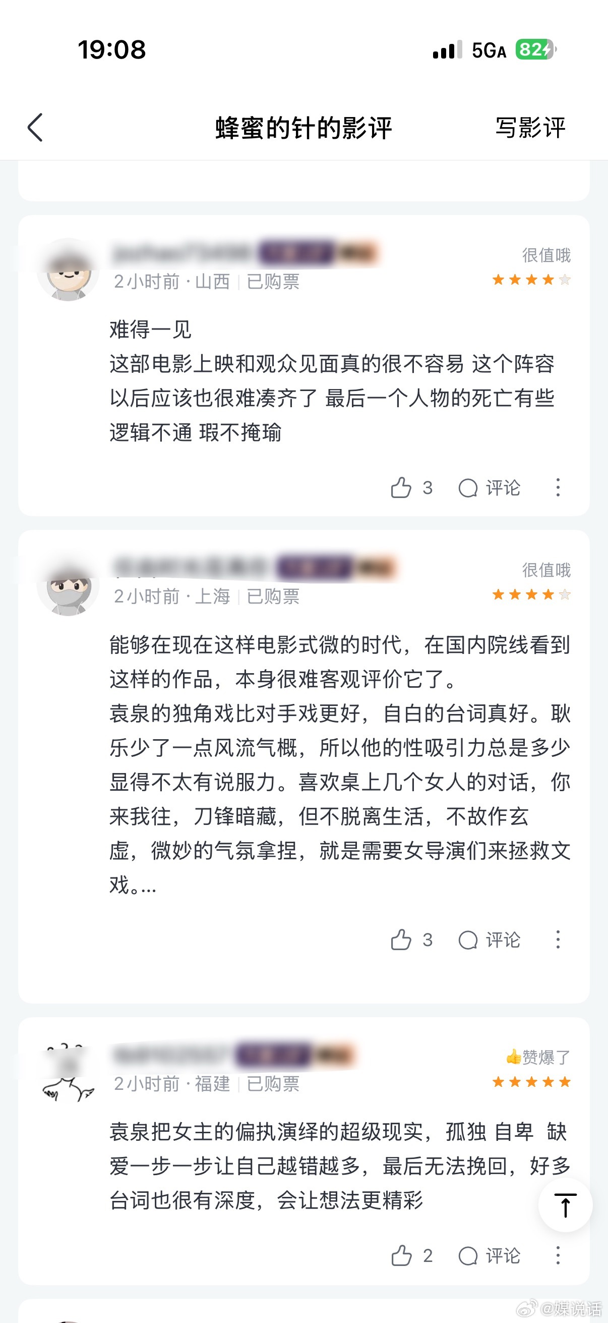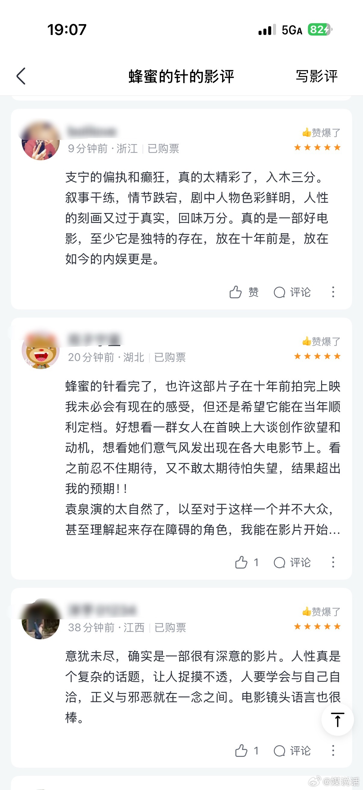 《蜂蜜的针》点映两天口碑爆了,几乎都是好评。十年磨一剑,经典不怕晚,导演的艺术造